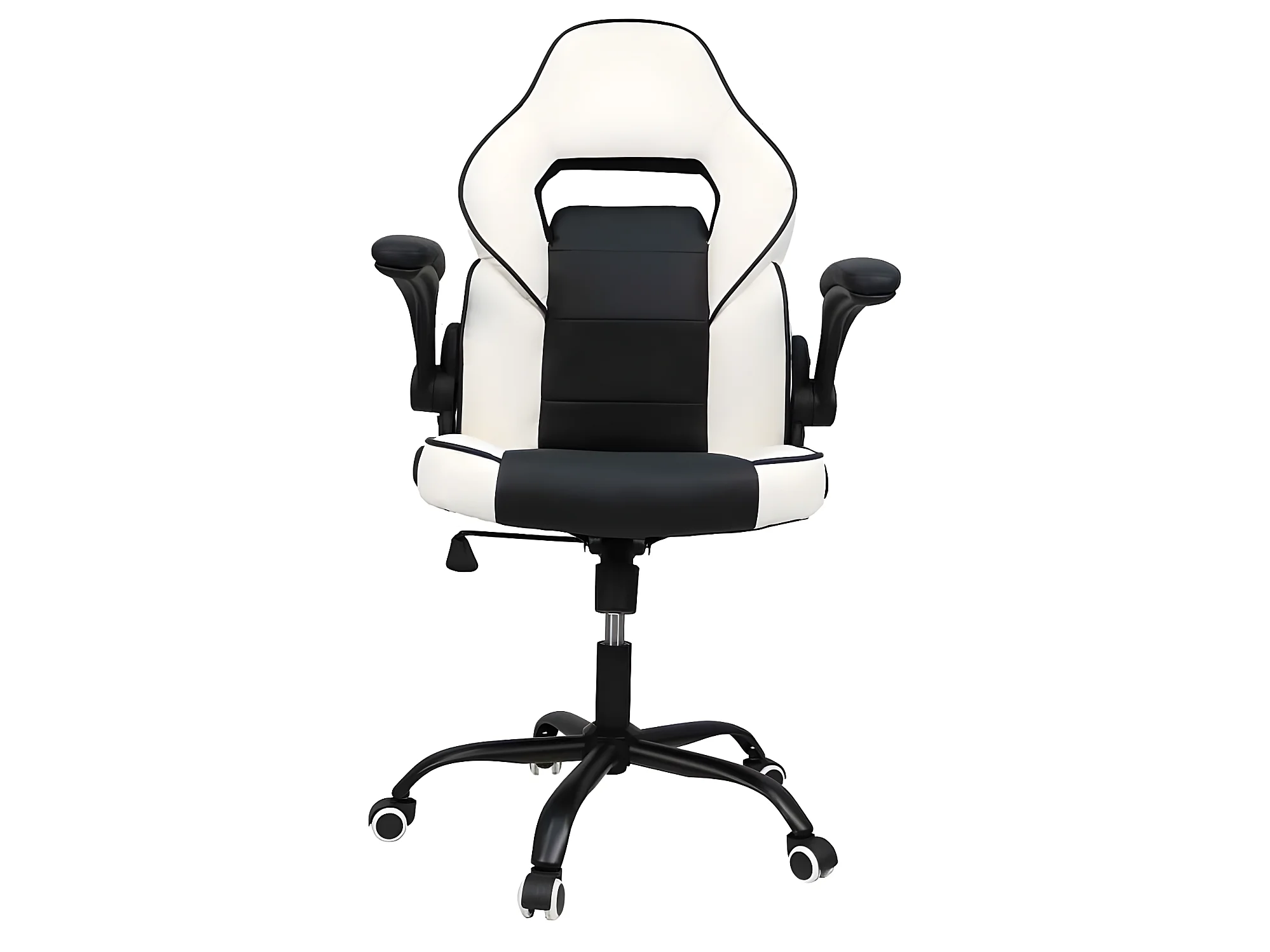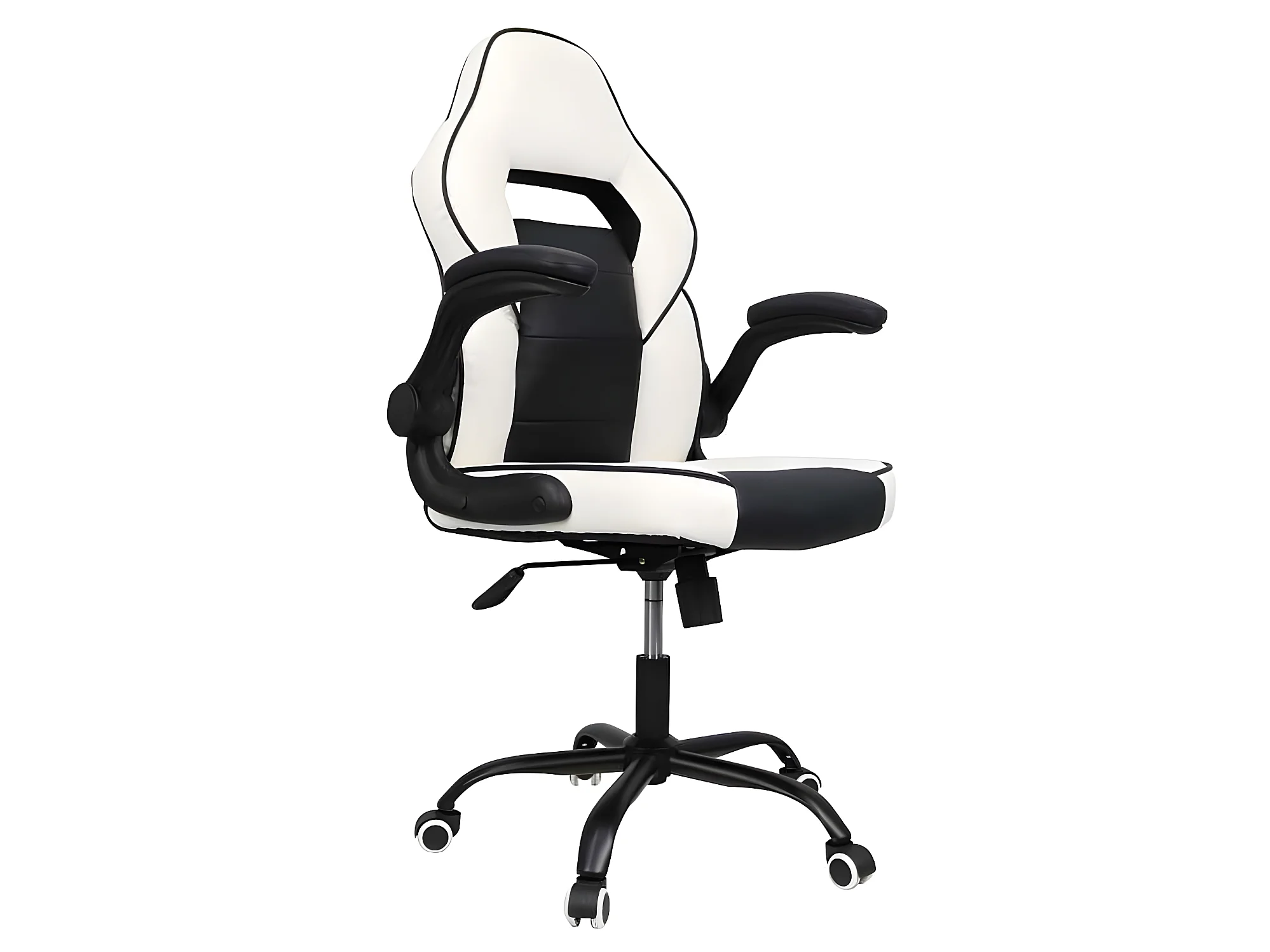 Sillon Gamer Blanco Negro Modelo Kart Giratorio Con Ruedas