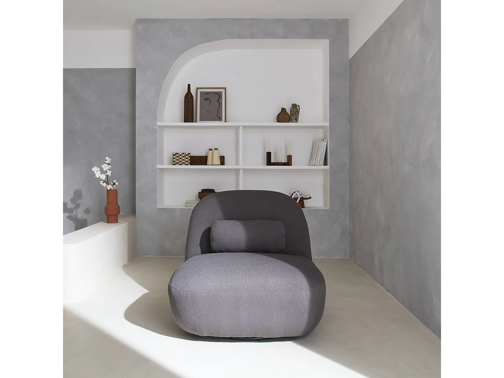 Sillón giratorio de tela 360º con cojín gris claro