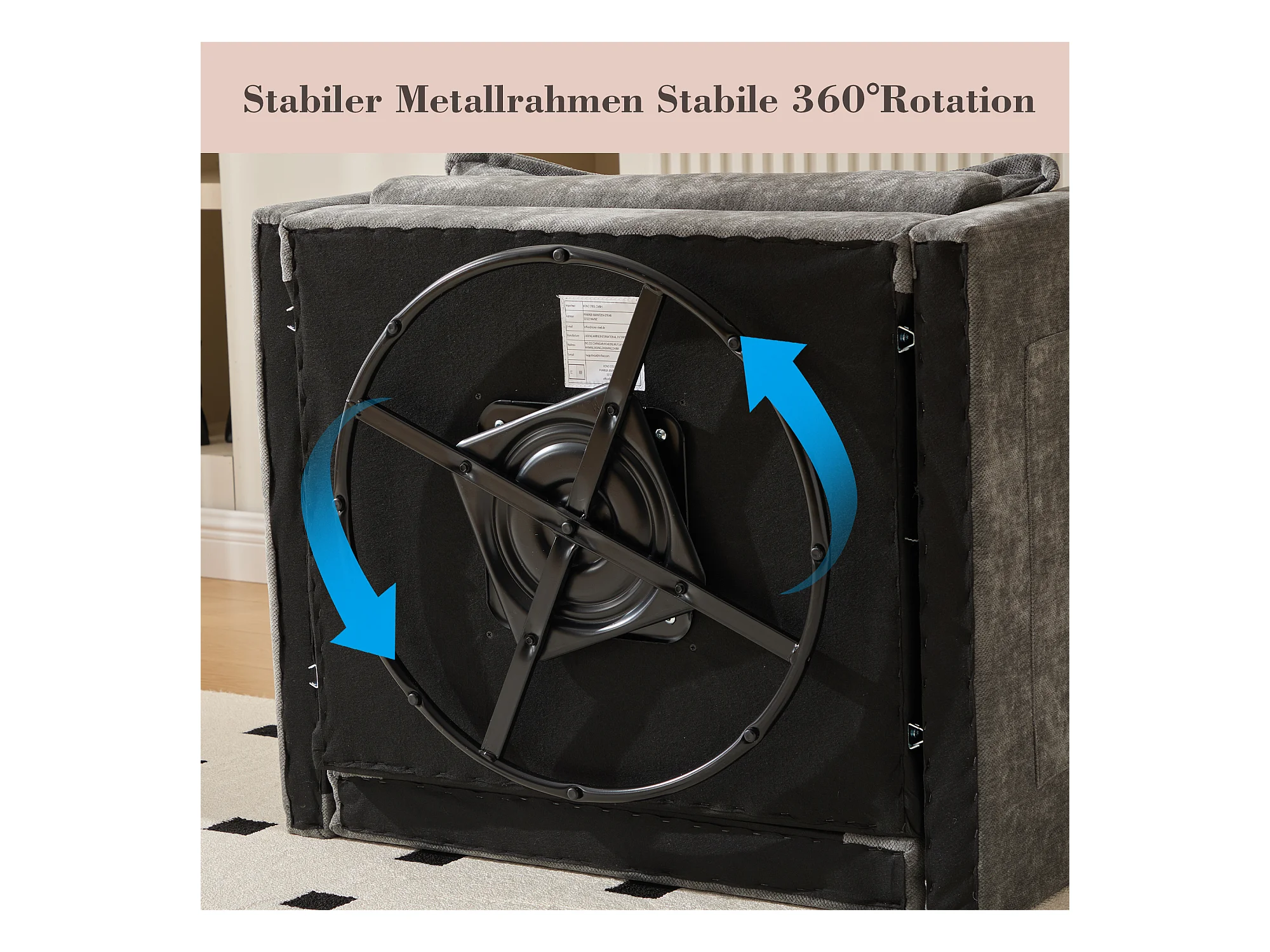 Sillón giratorio 360° con reposabrazos, diseño moderno, tejido chenilla, color gris, incluye cojín (92x74x67cm)