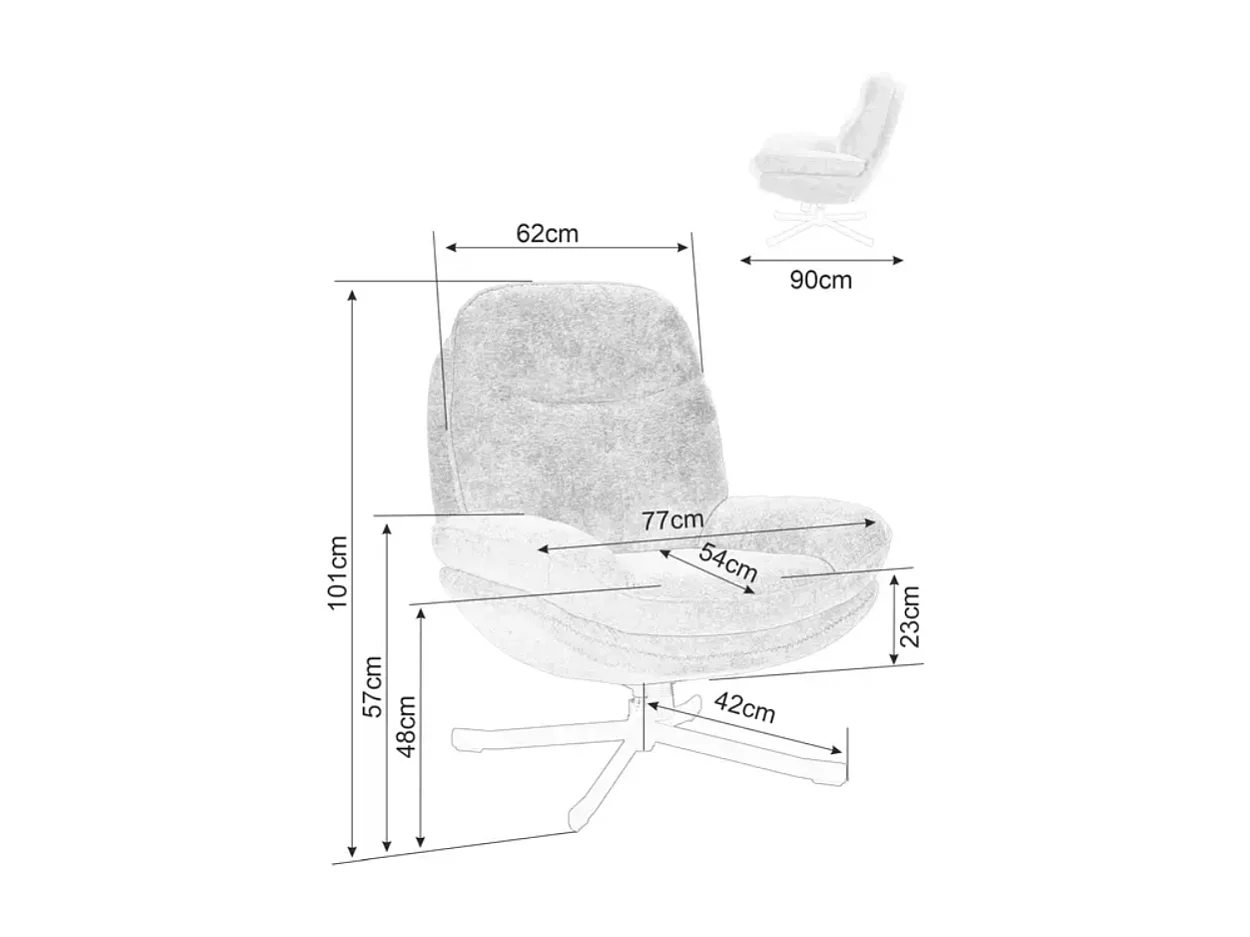 Sillón giratorio 360° de tela gris sin reposabrazos ZALKA color gris