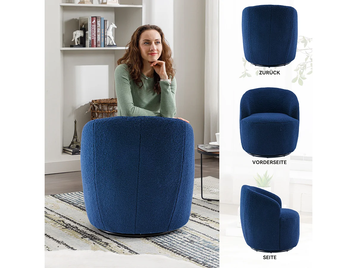Sillón giratorio con acento en tela de peluche, sillón barril con anillo de metal con recubrimiento de polvo negro, marrón
