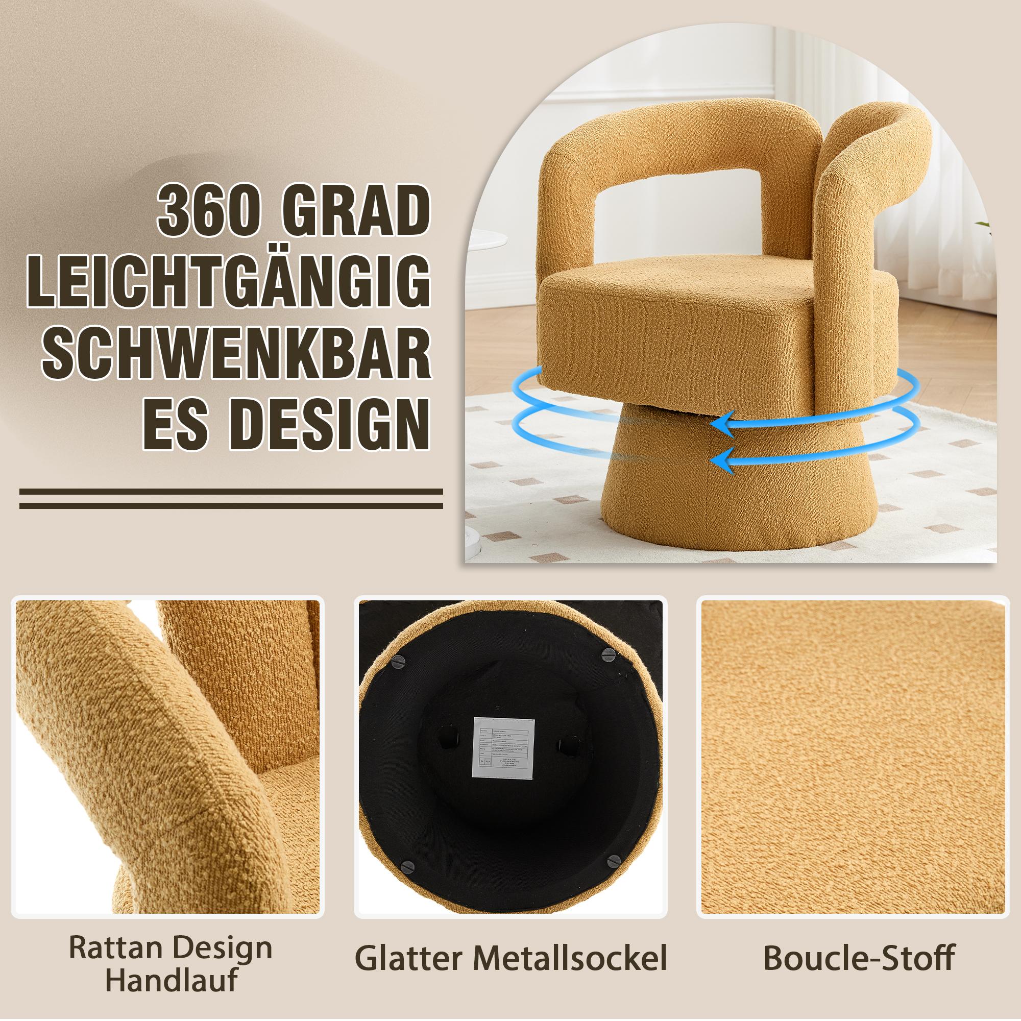 Sillón giratorio de 360° con asiento acolchado, diseño de salón para sala de estar, oficina, senfgelb