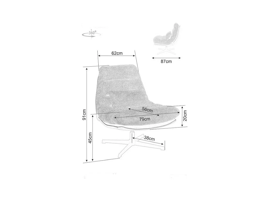 Sillón giratorio 360° SODALITE de ecopiel y tela gris