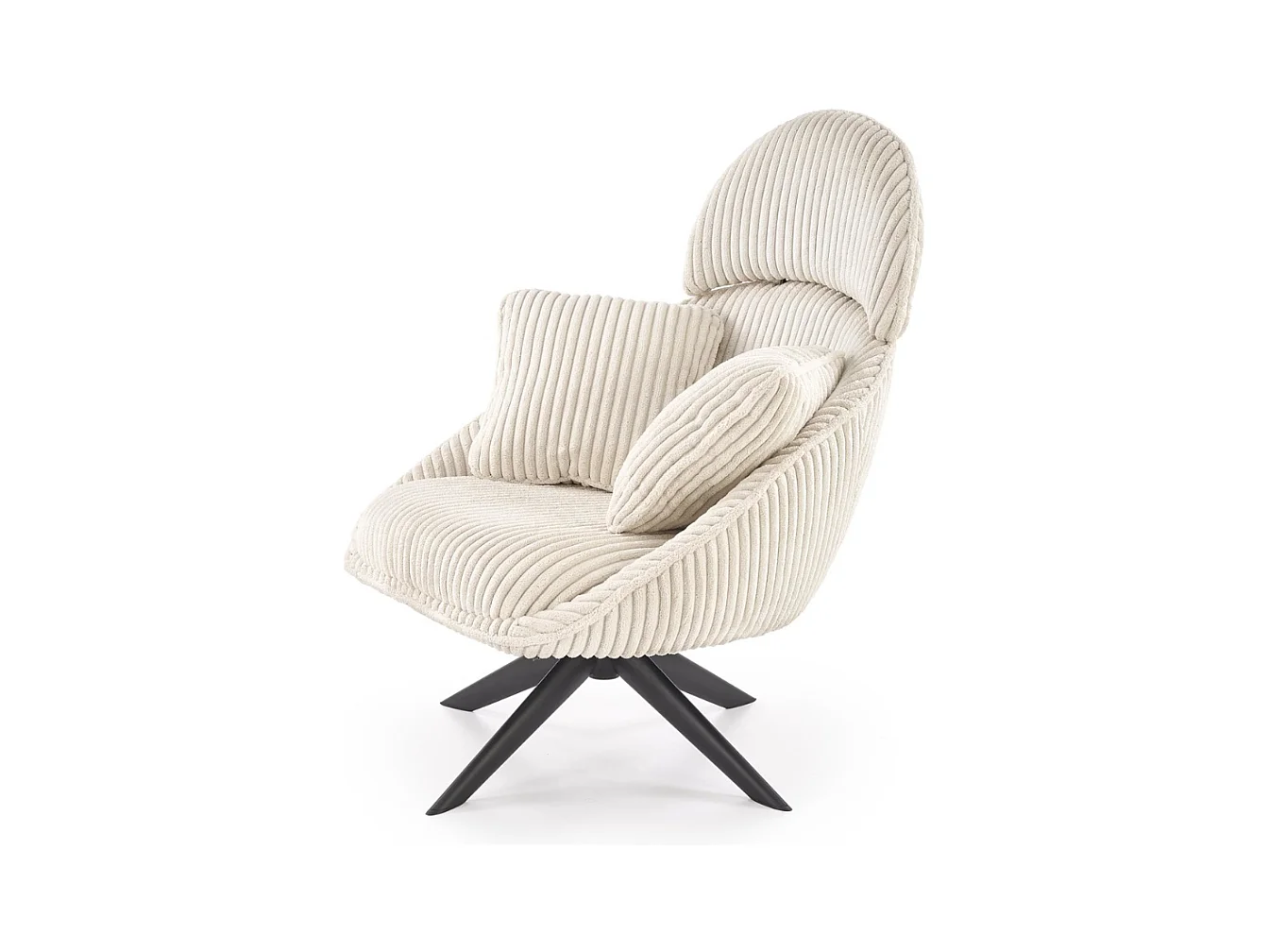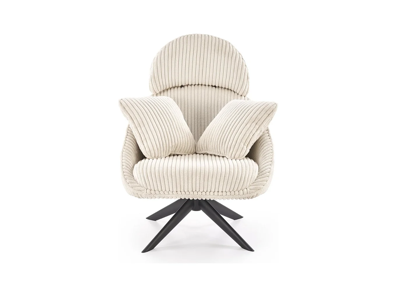 Sillón giratorio en tejido acanalado crema + 2 cojines HELENA