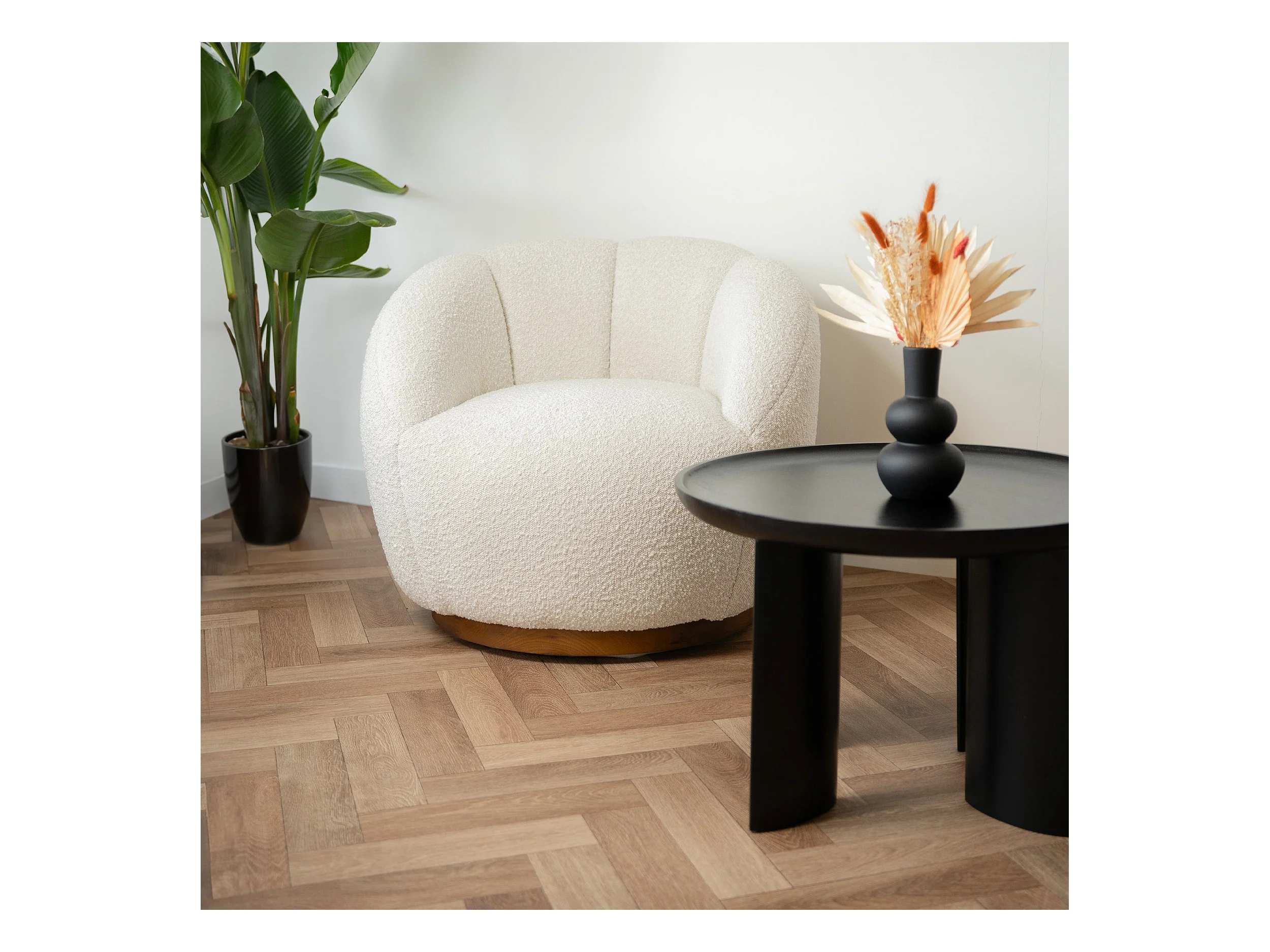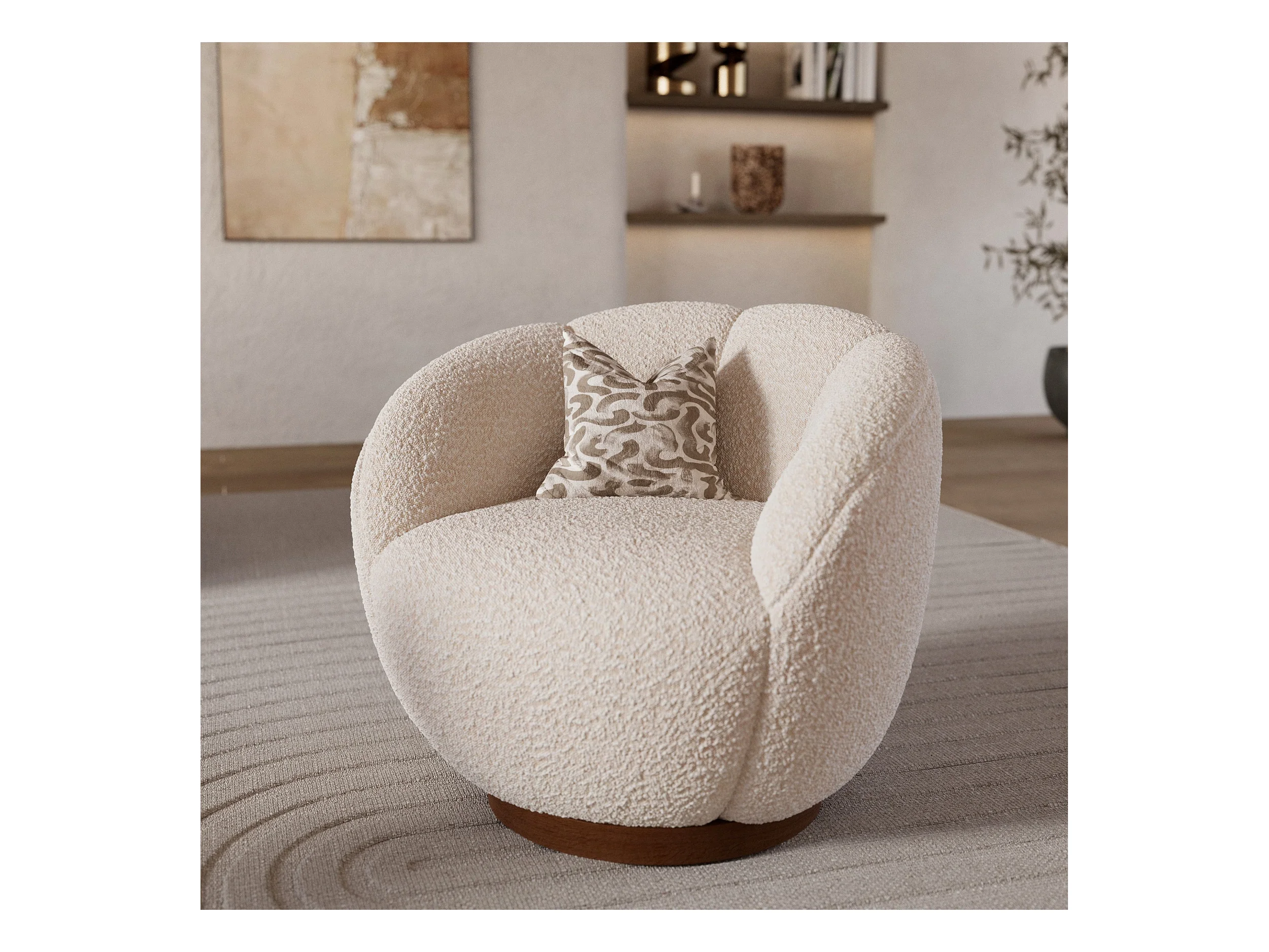 Sillón giratorio en tela bouclé blanco - Ysé