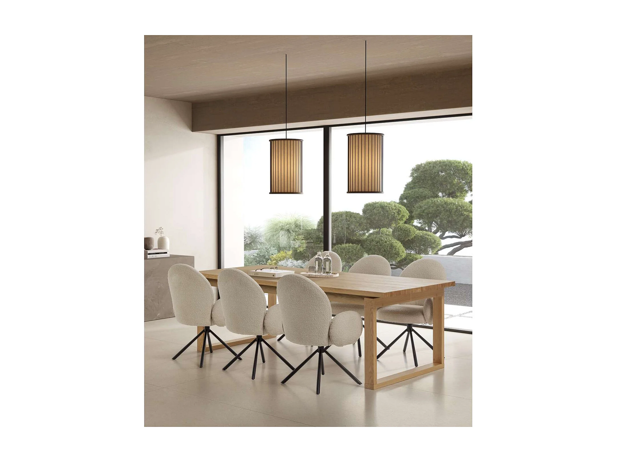 Silla de comedor - Tapizada en Tela Bouclé - Metal negro - Seda