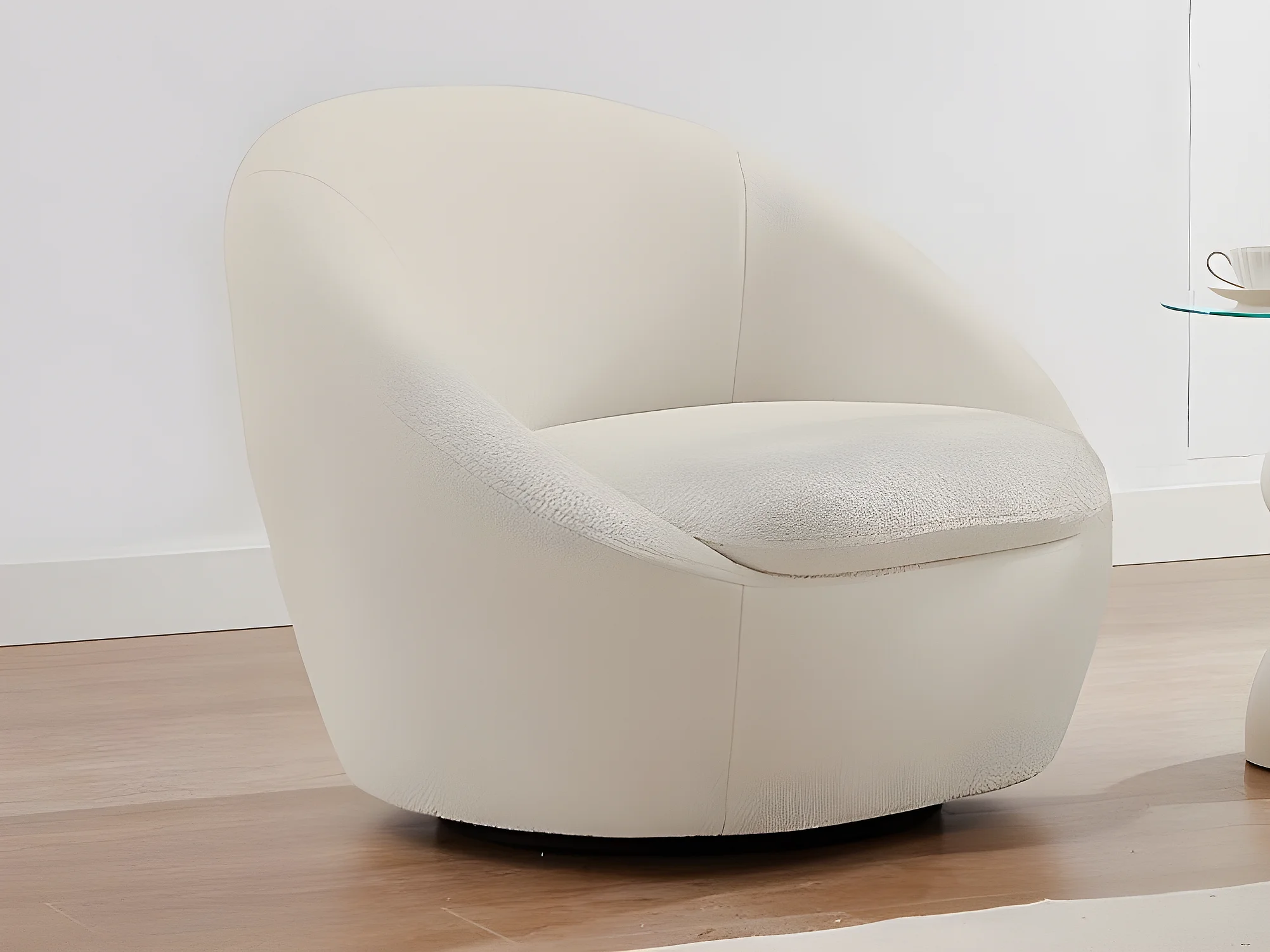 Sillón giratorio redondeado en tela de rizo blanco LACARA