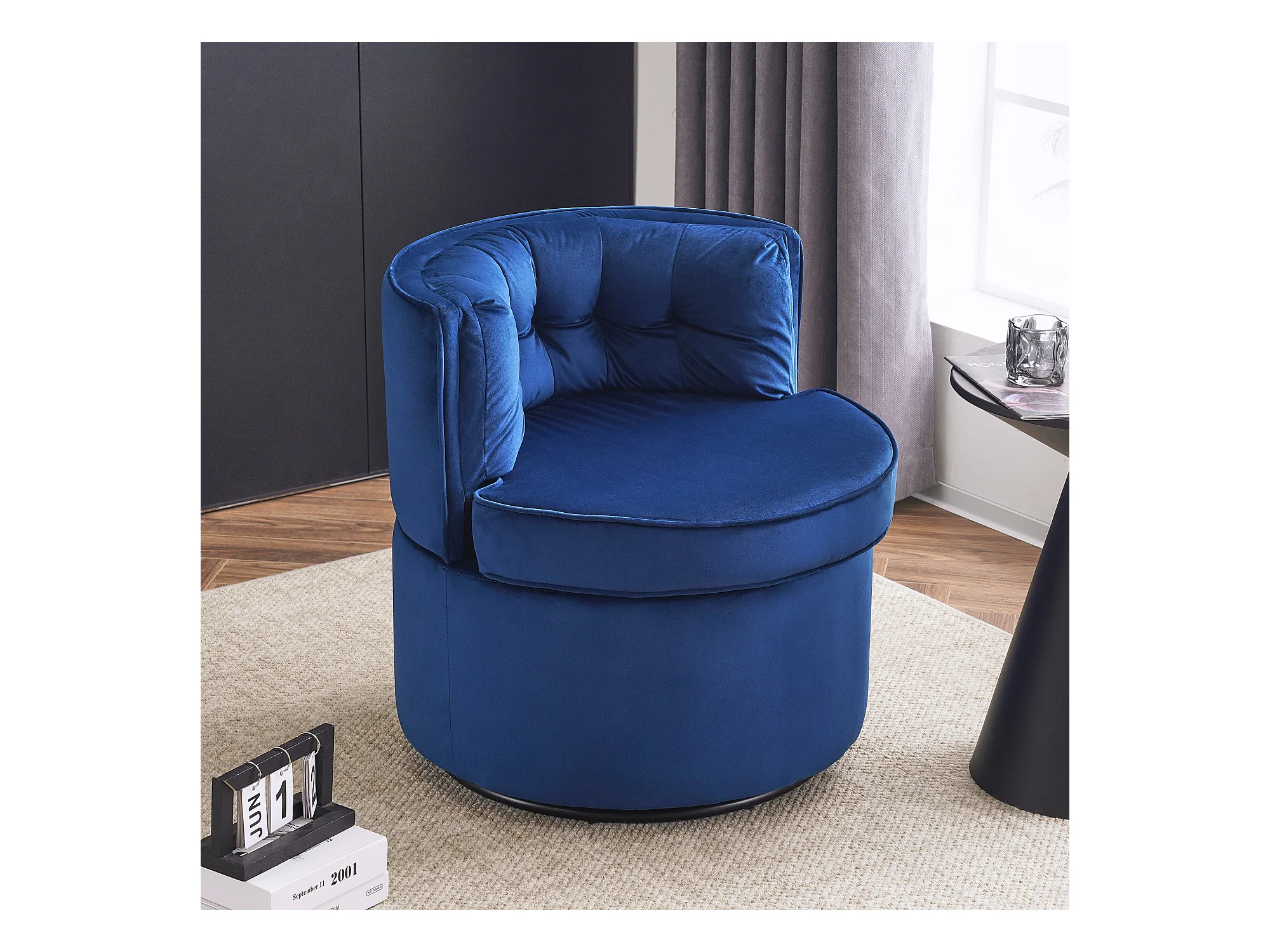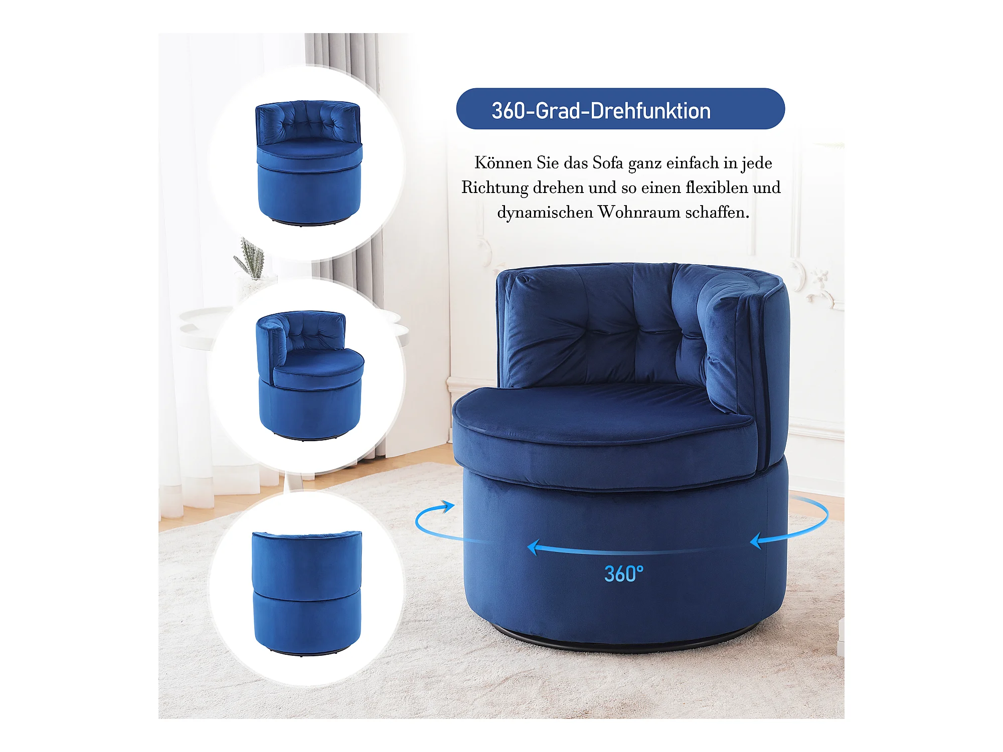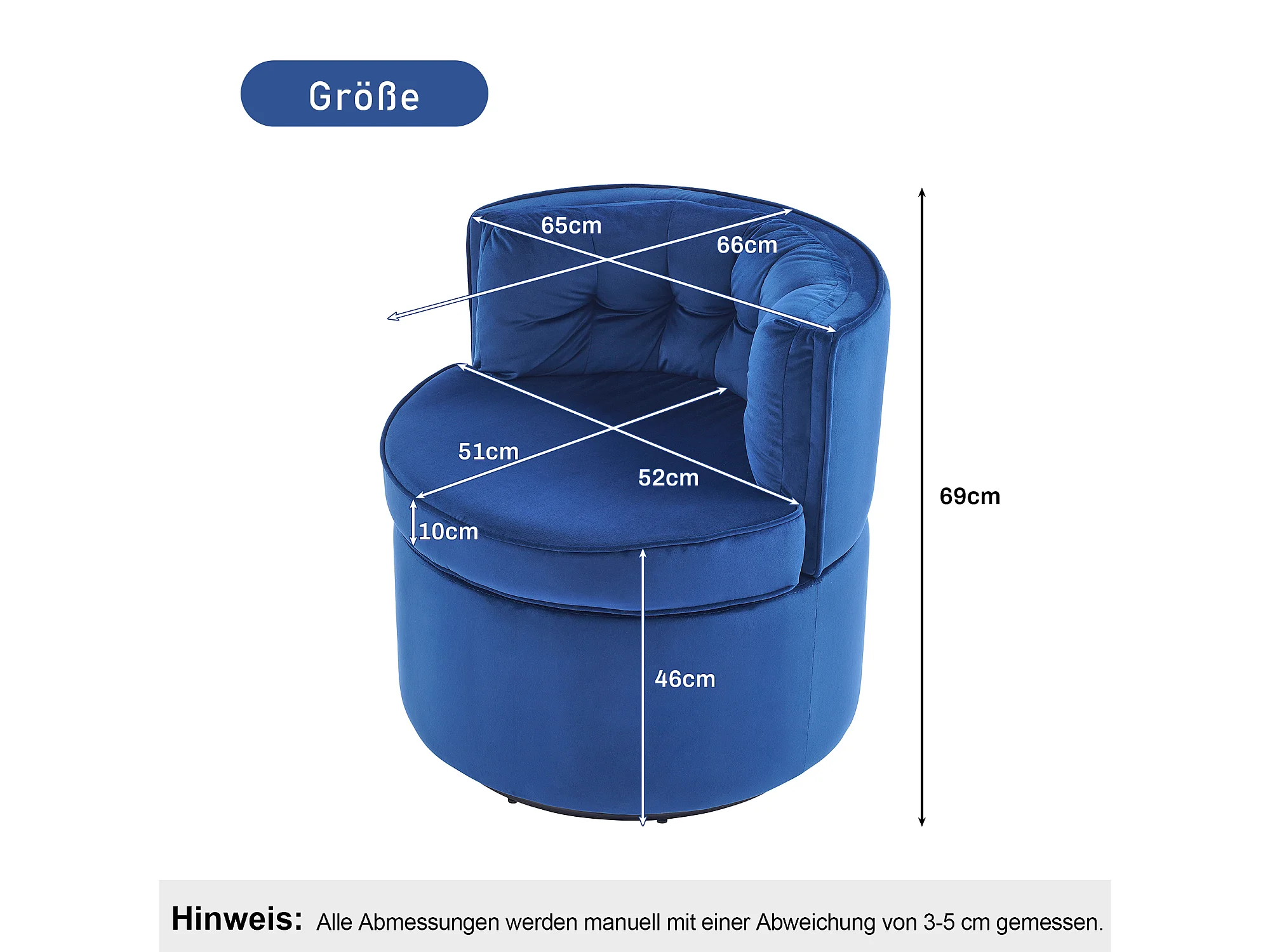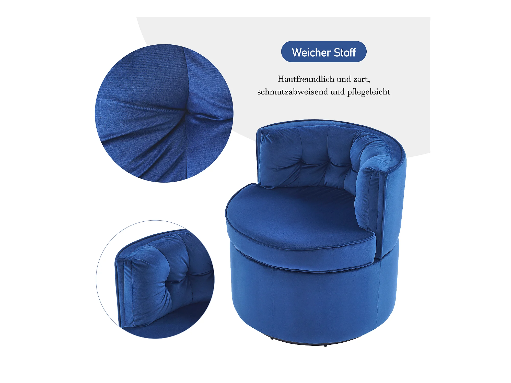 Sillón giratorio redondo - tapizado en terciopelo con respaldo - cómodo sillón - azul - 65 x 65 x 69 cm