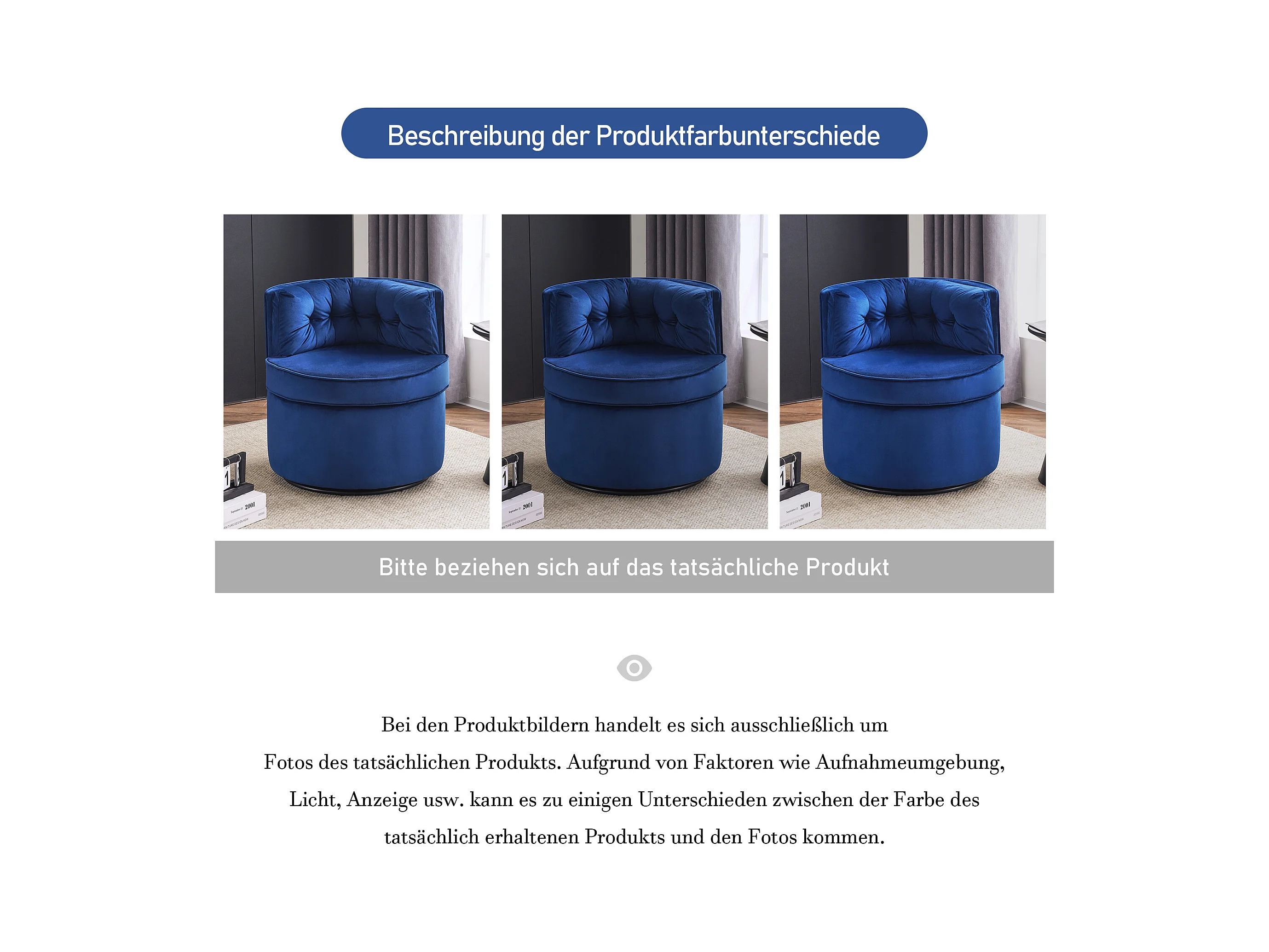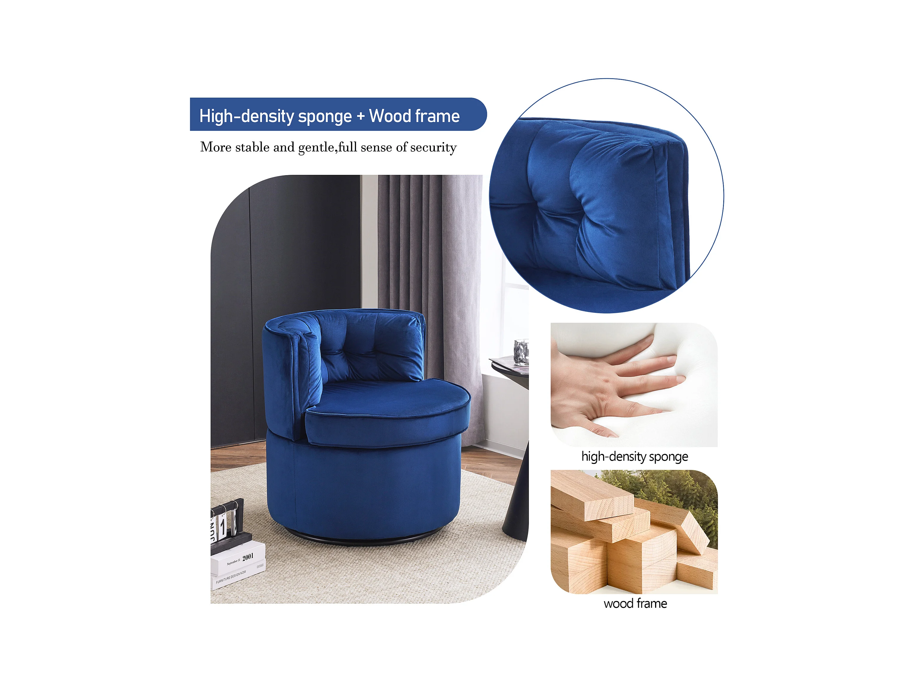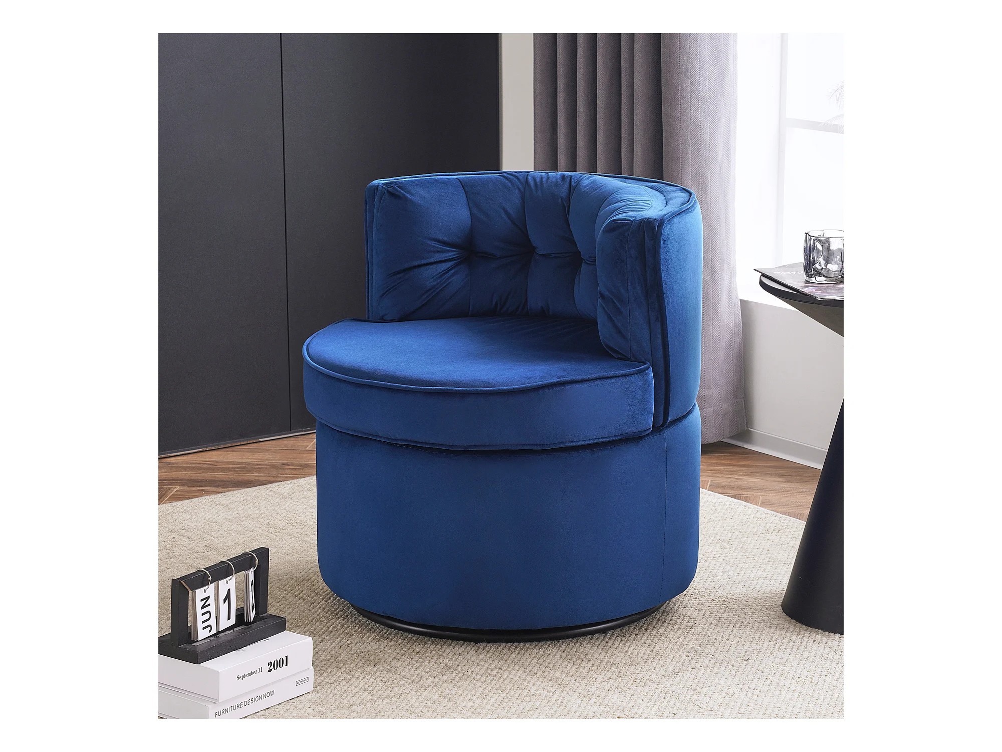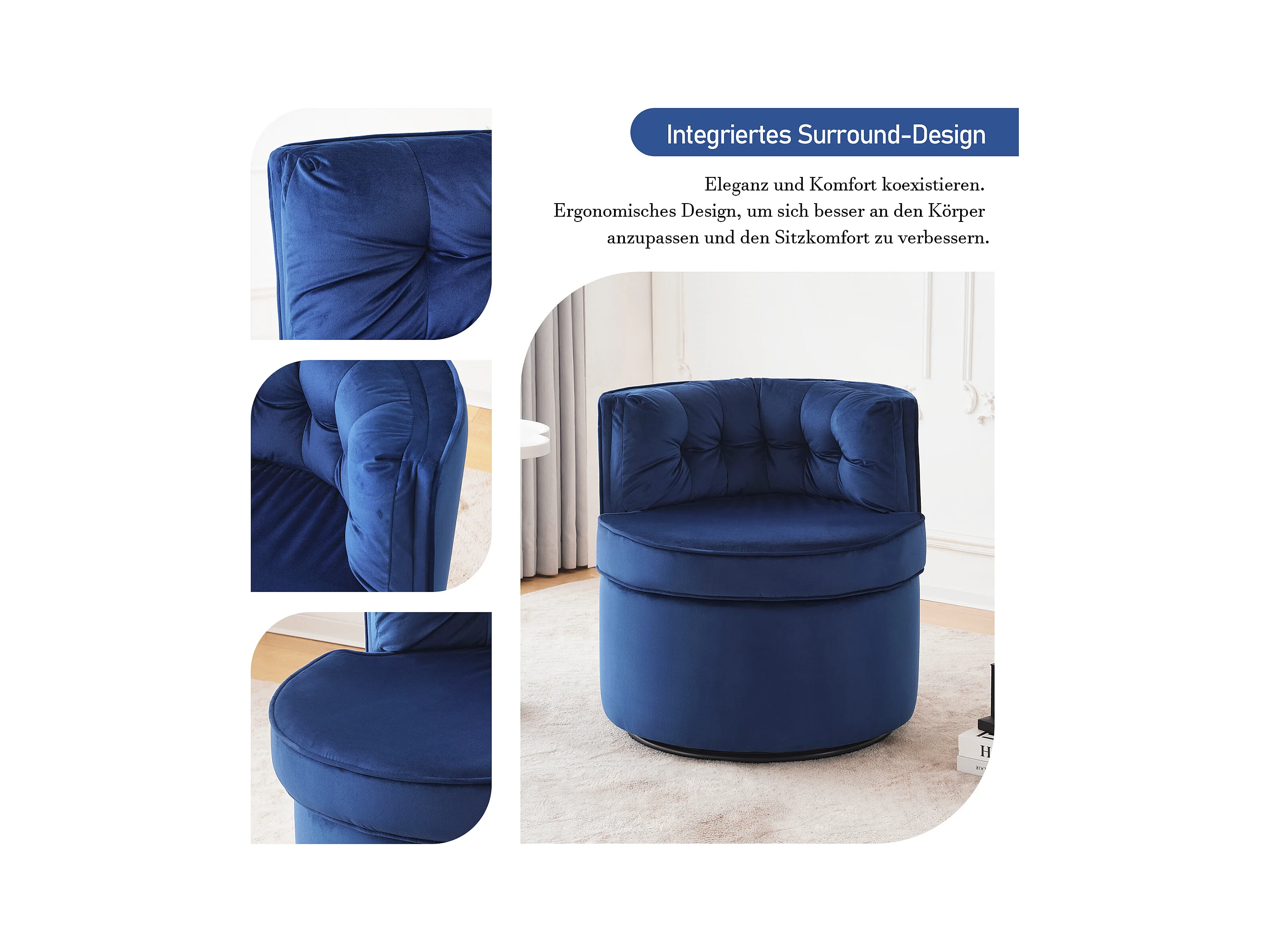 Sillón giratorio redondo - tapizado en terciopelo con respaldo - cómodo sillón - azul - 65 x 65 x 69 cm