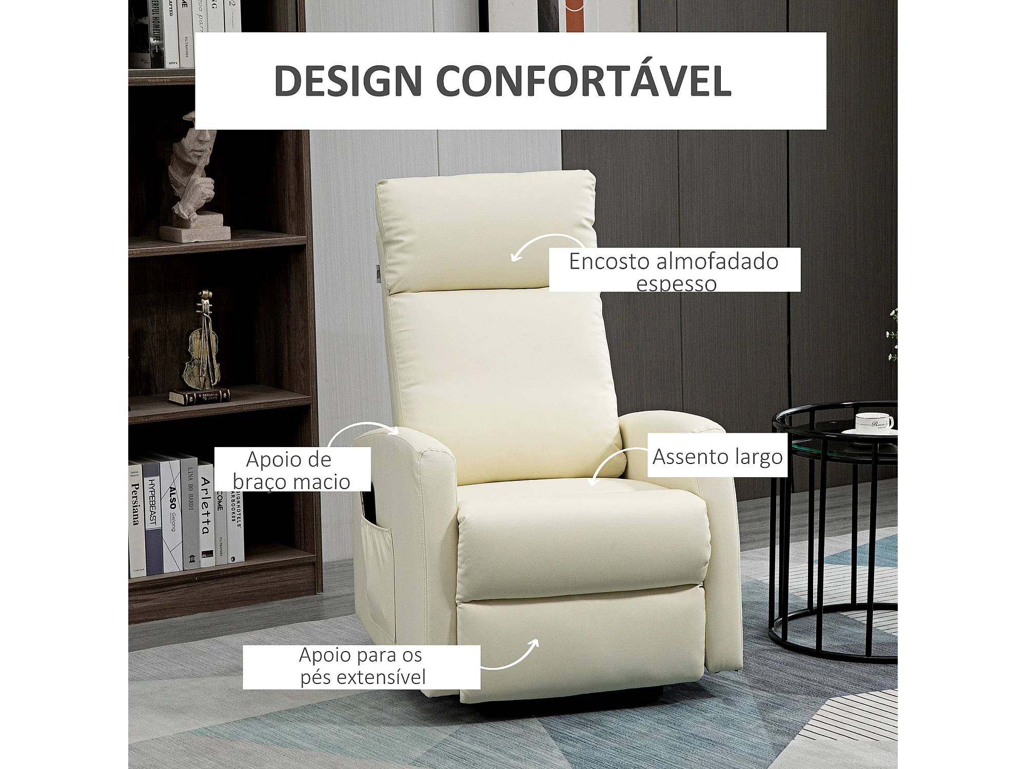 Sillón Glow Homcom elevable respaldo reclinable crema 105x67x95 cm