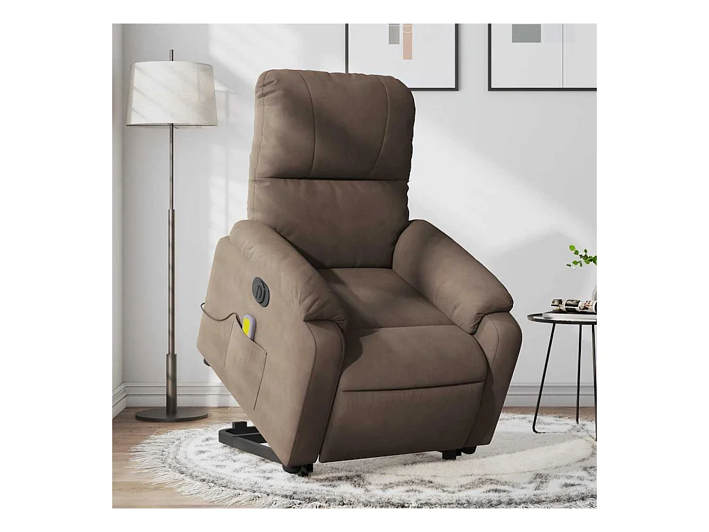 Sillón reclinable de masaje elevable tela de microfibra marrón