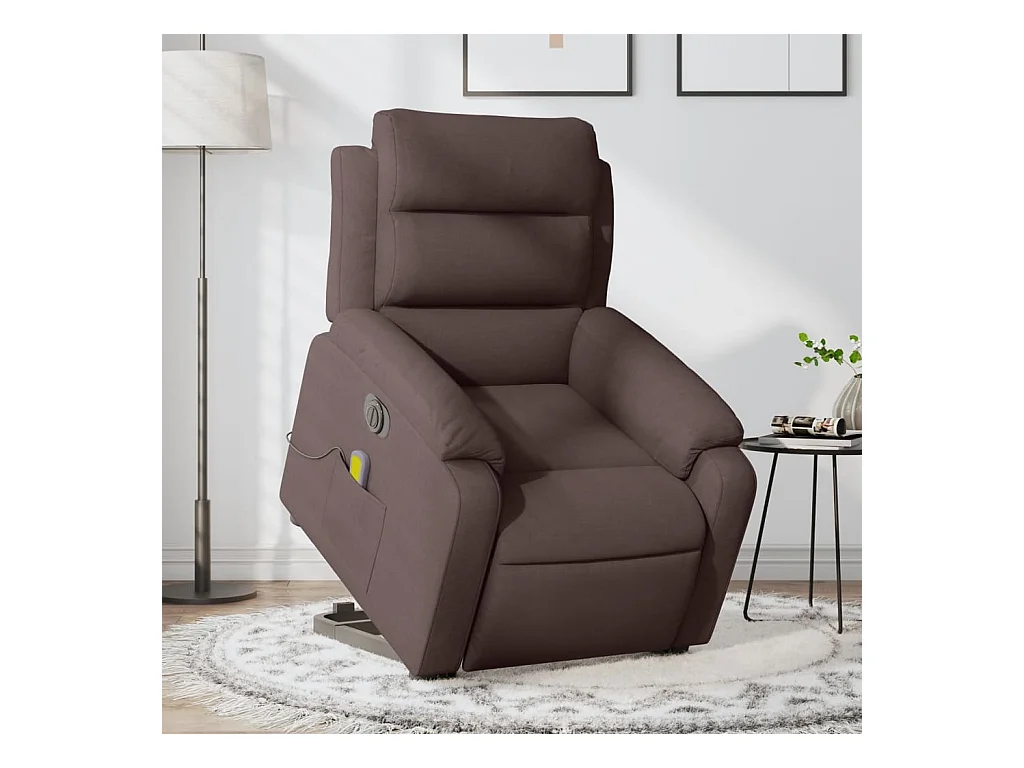 Sillón masaje eléctrico reclinable elevable tela marrón oscuro