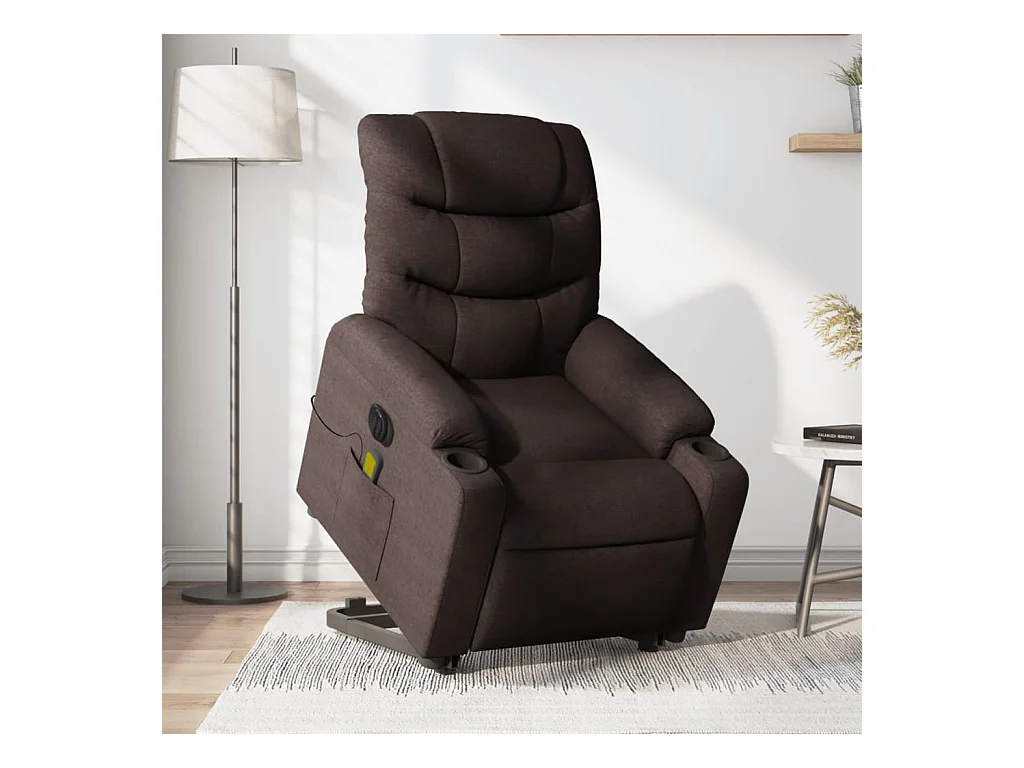 Sillón masaje eléctrico reclinable elevable tela marrón oscuro YOE71623