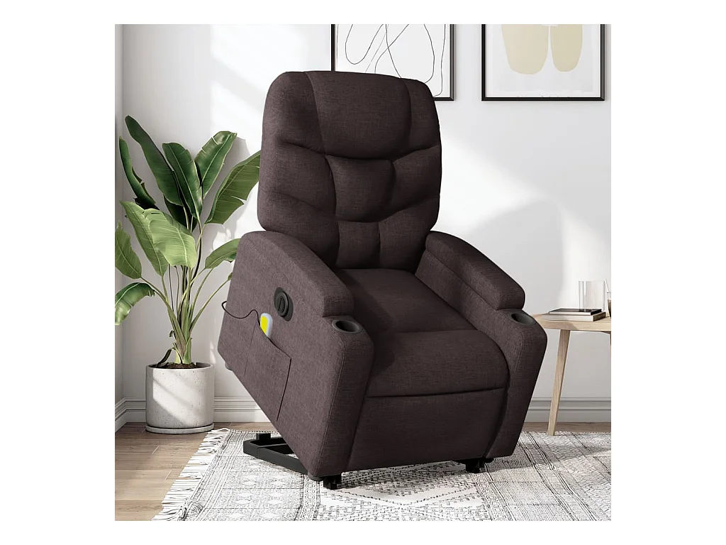 Sillón masaje eléctrico reclinable elevable tela marrón oscuro YOE62564