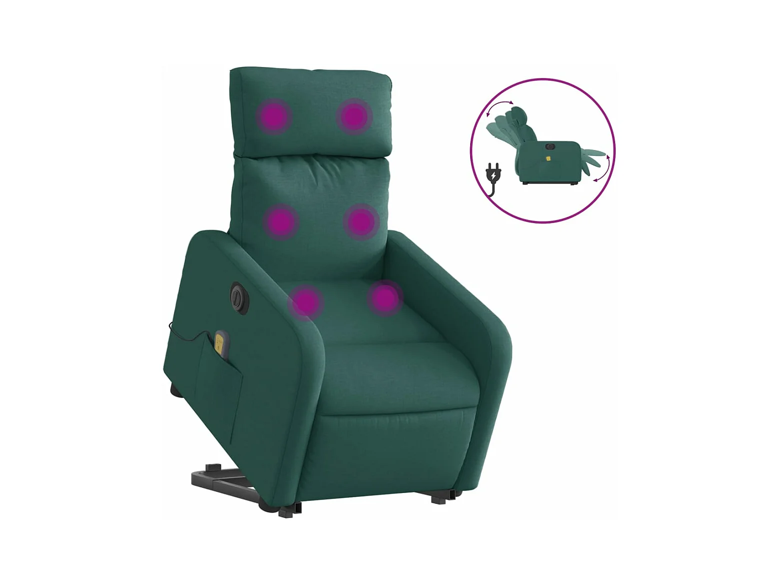Sillón masaje eléctrico reclinable elevable tela verde oscuro YOE10126