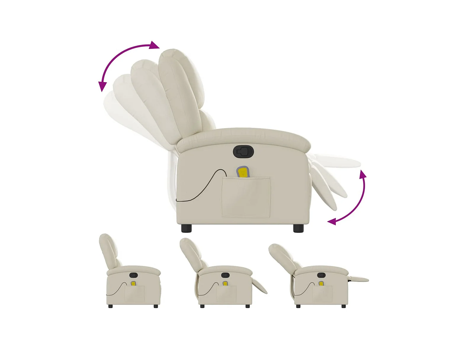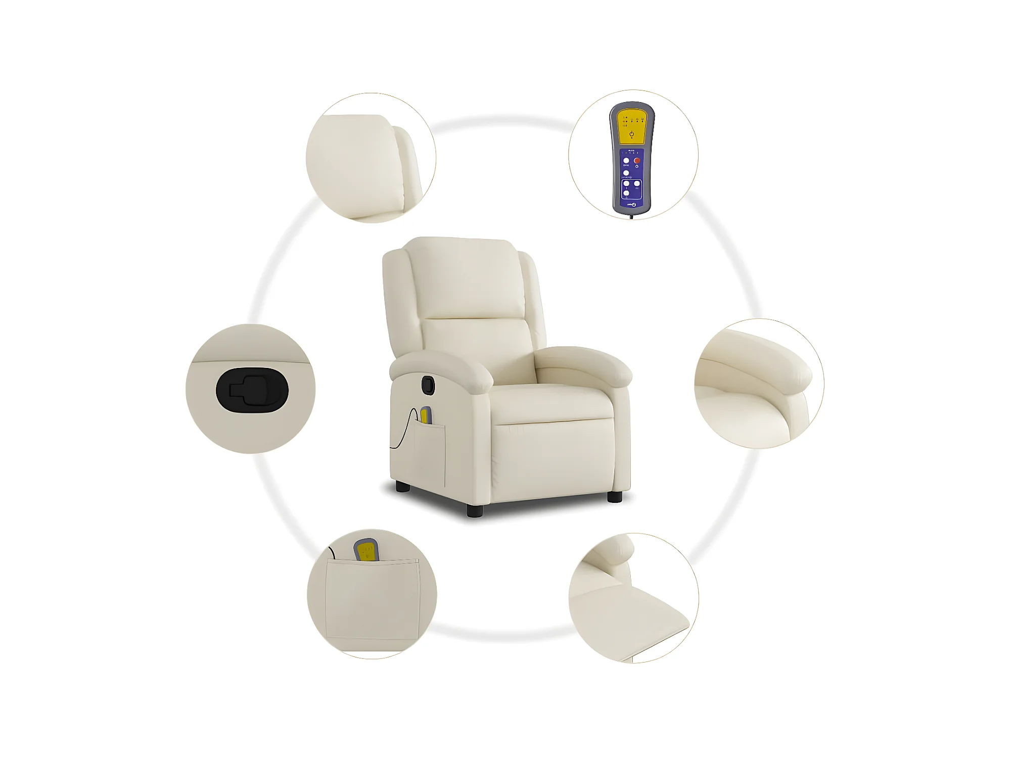 Sillón reclinable y reposapiés de masaje de polipiel color crema