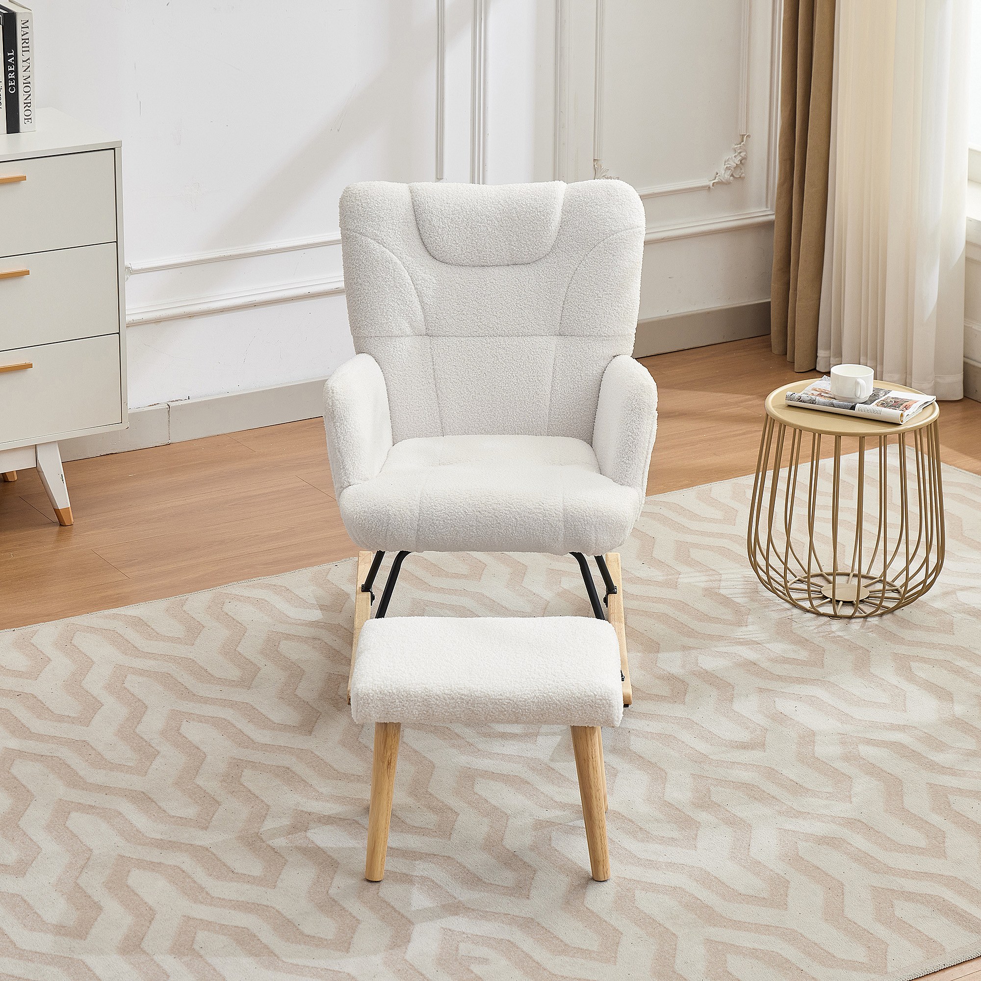 Mecedora ergonómica blanca de 92 cm de altura, mecedora, sillón de salón