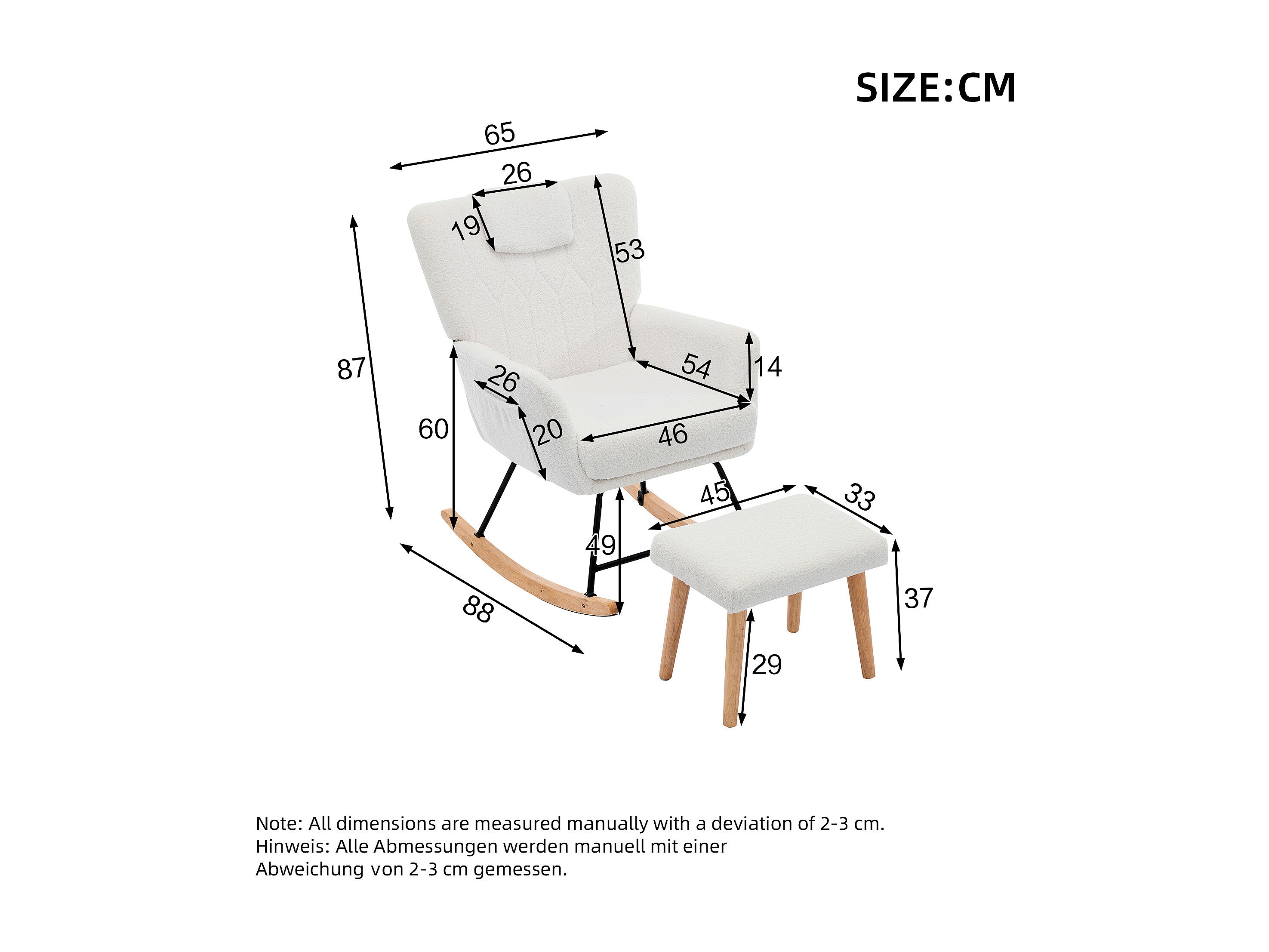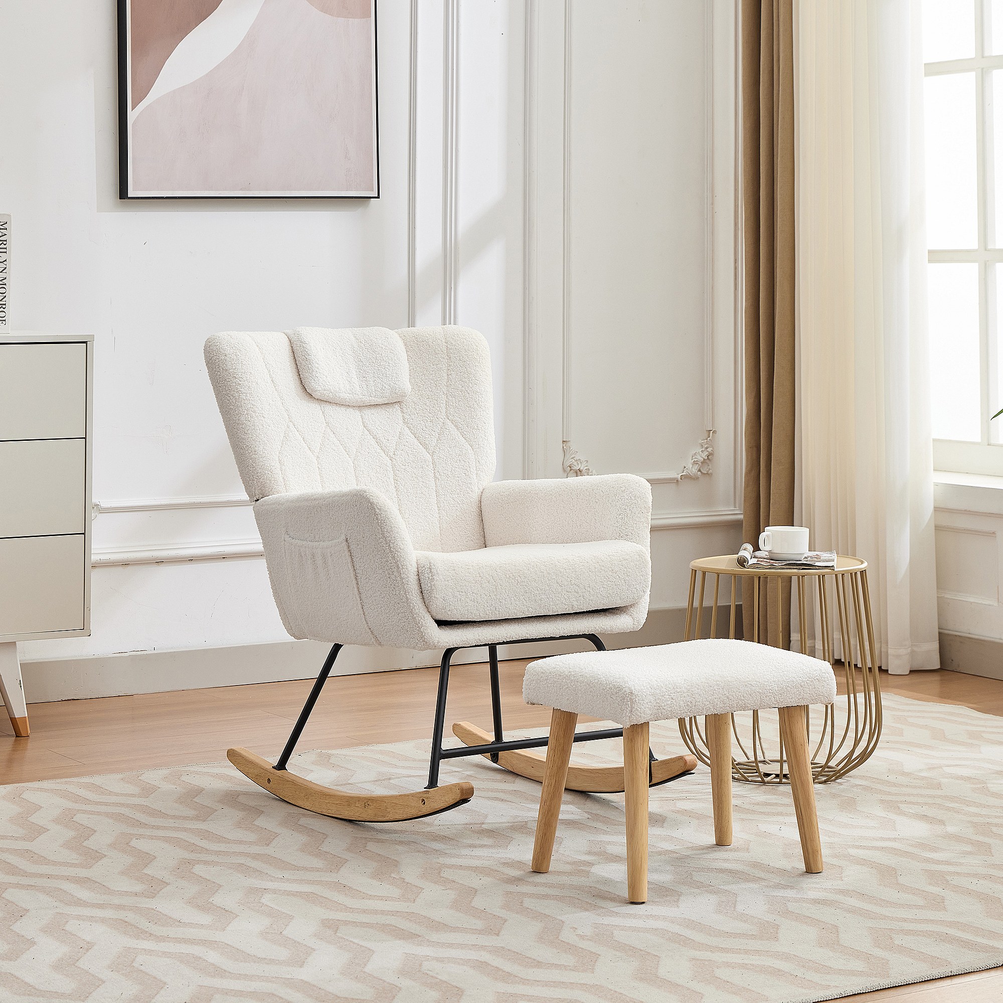 Sillón mecedor 65x88x87 cm - con reposapiés y respaldo alto - Balanceo de 30° - con bolsillos - Blanco