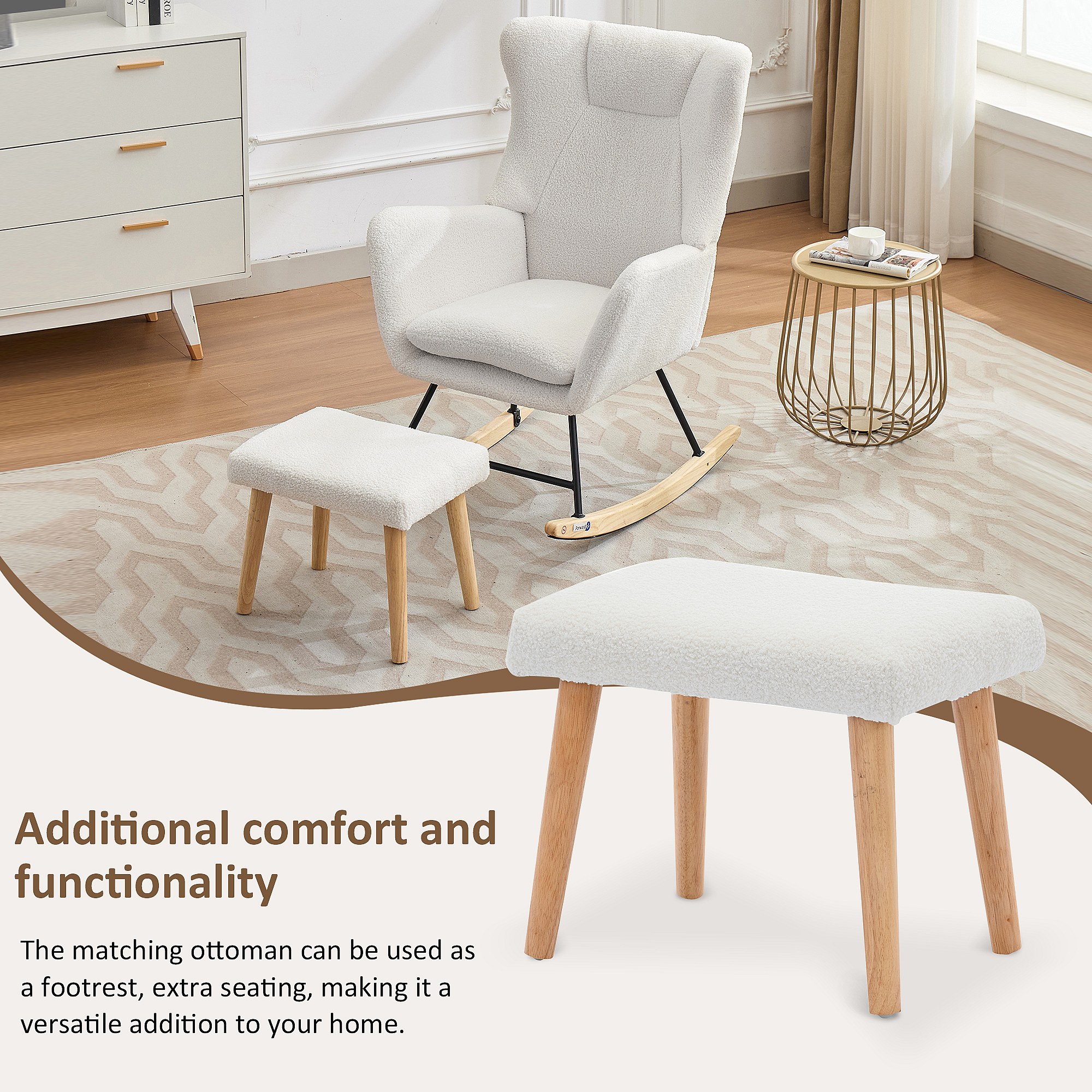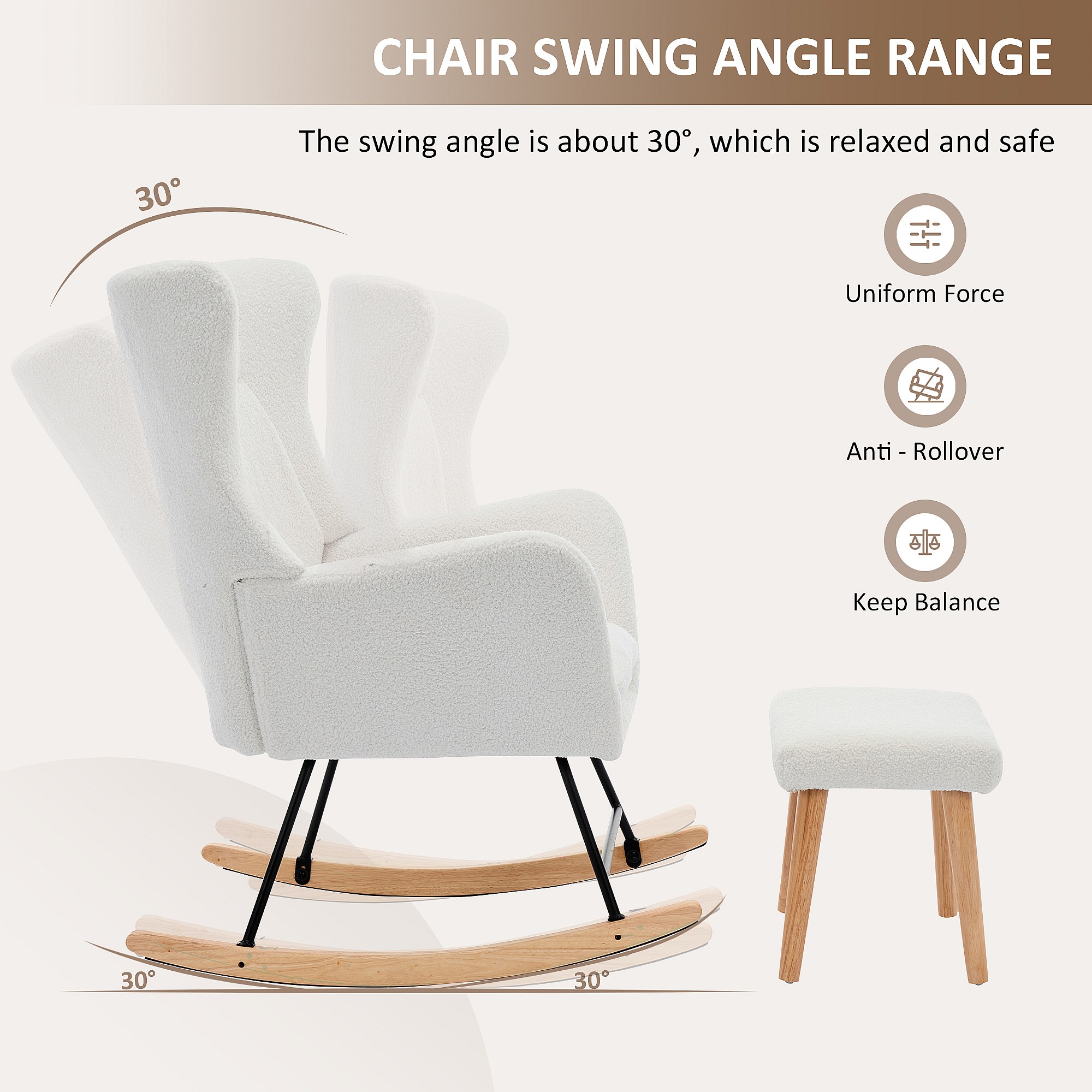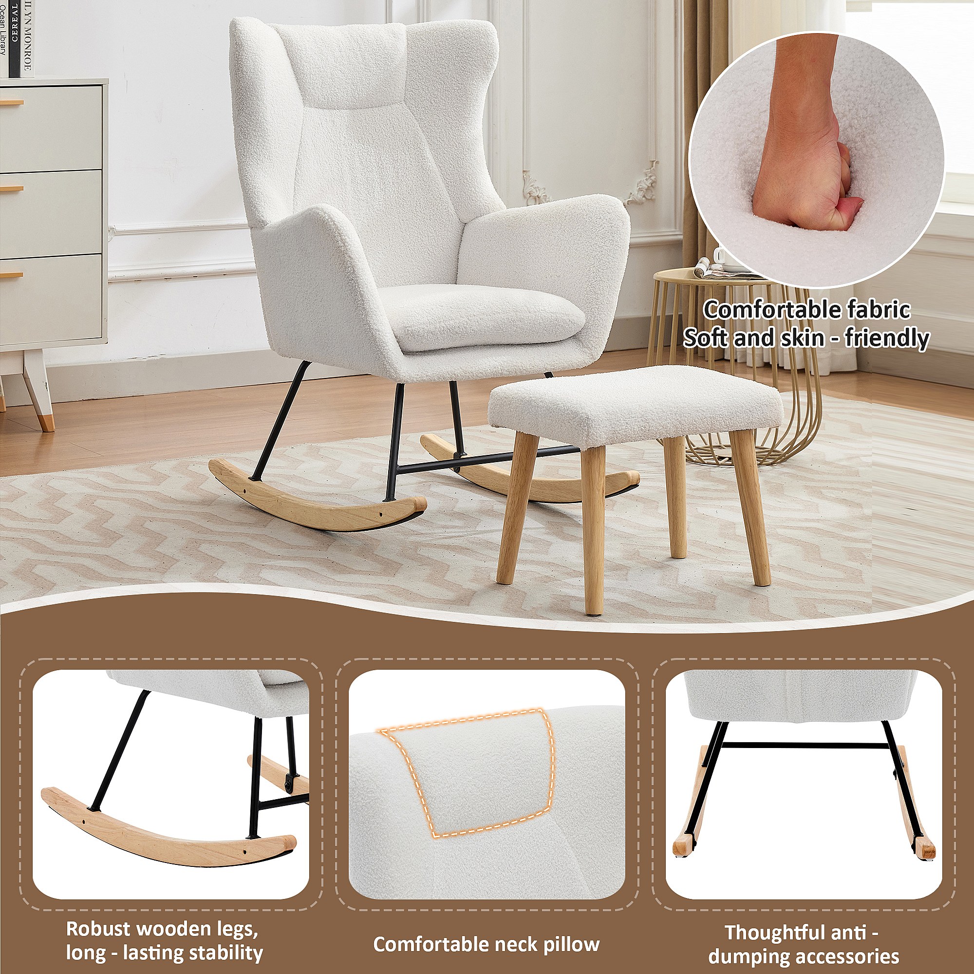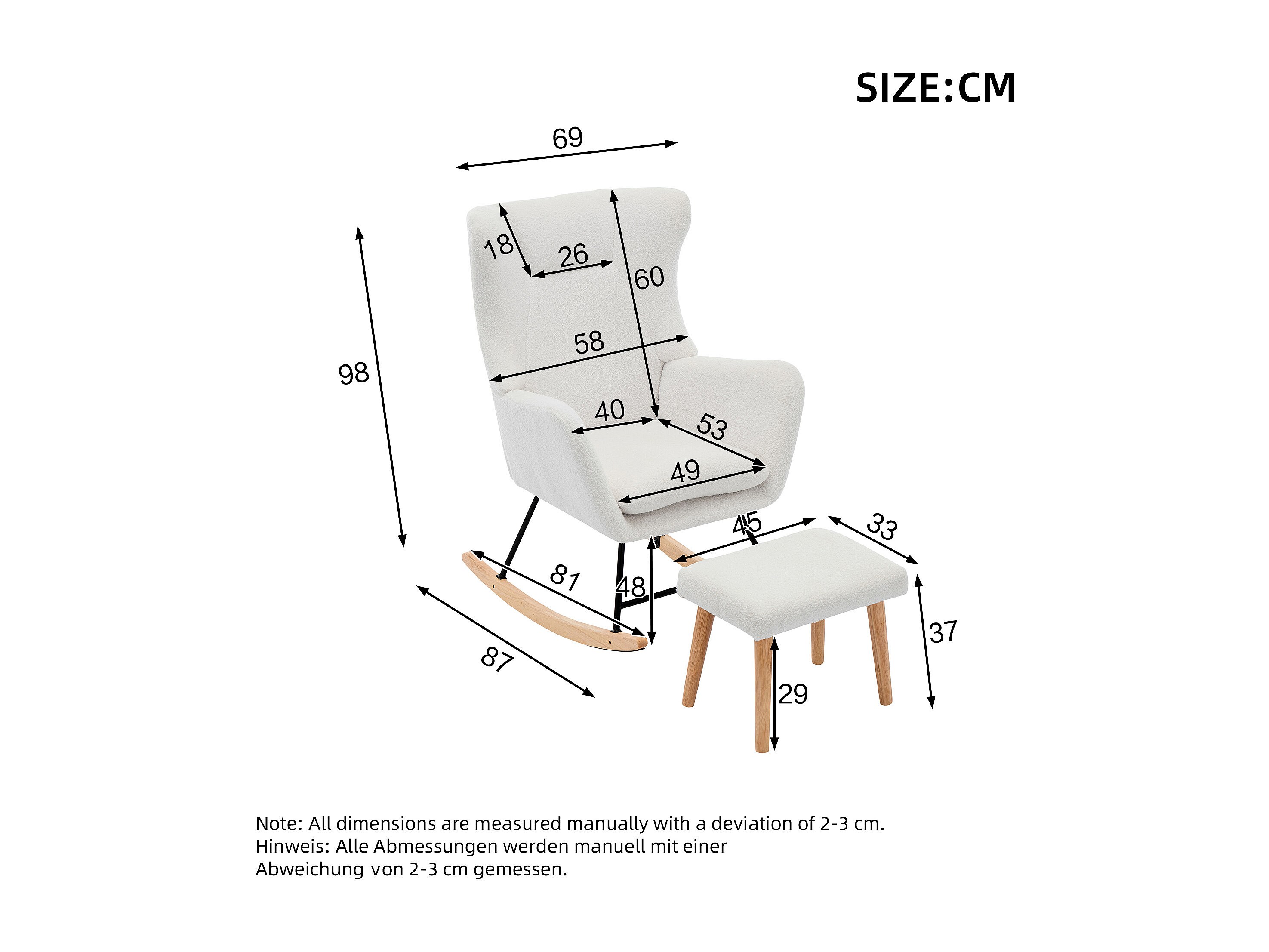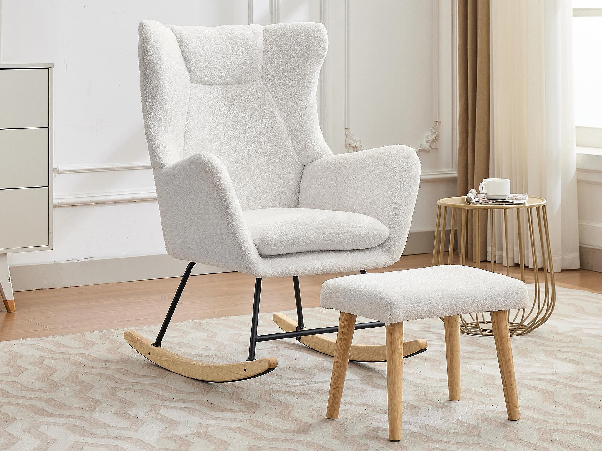 Sillón mecedor 69x87x98 cm - con reposapiés y respaldo alto - Balanceo 30° - Cojines extraíbles - Blanco