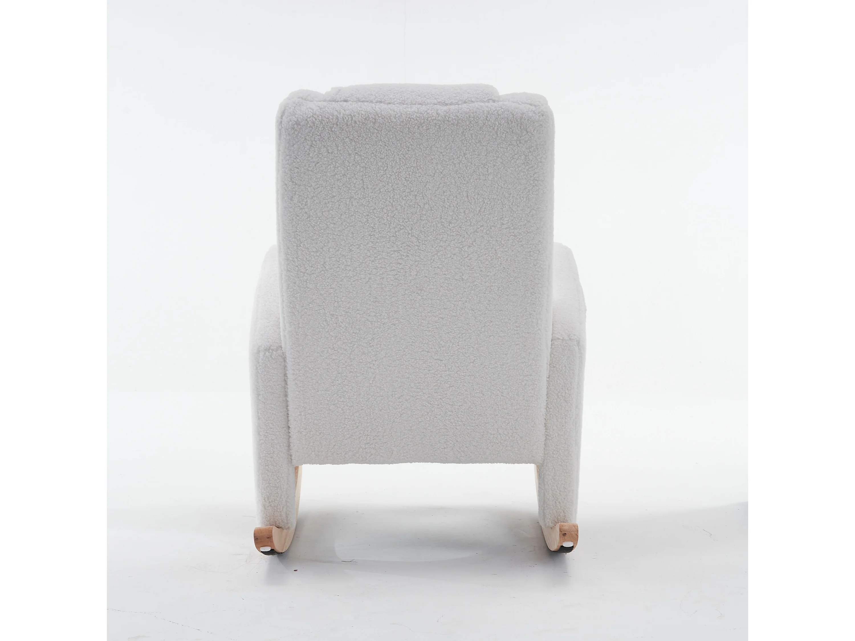 Sillón mecedor blanco con reposabrazos, respaldo y reposapiés retráctil - tela afelpada - para salas de estar y estudios