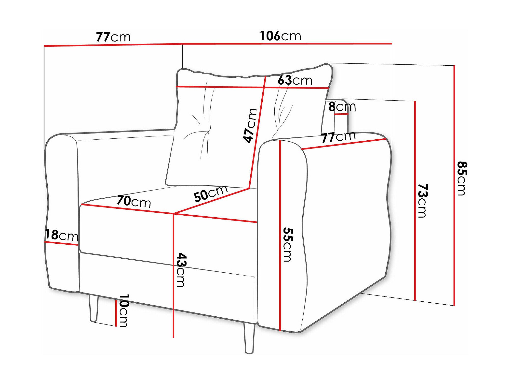 • Profundidad del reposabrazos: 77 cm