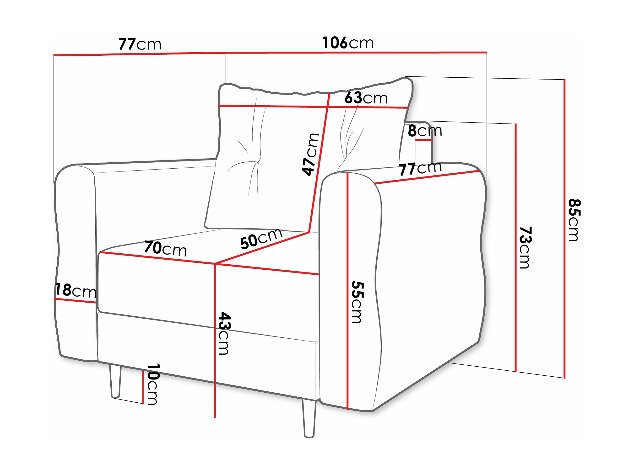 Sillón Veldala 104, De color marrón claro, 85x106x77cm, Tapiz, Patas: Madera