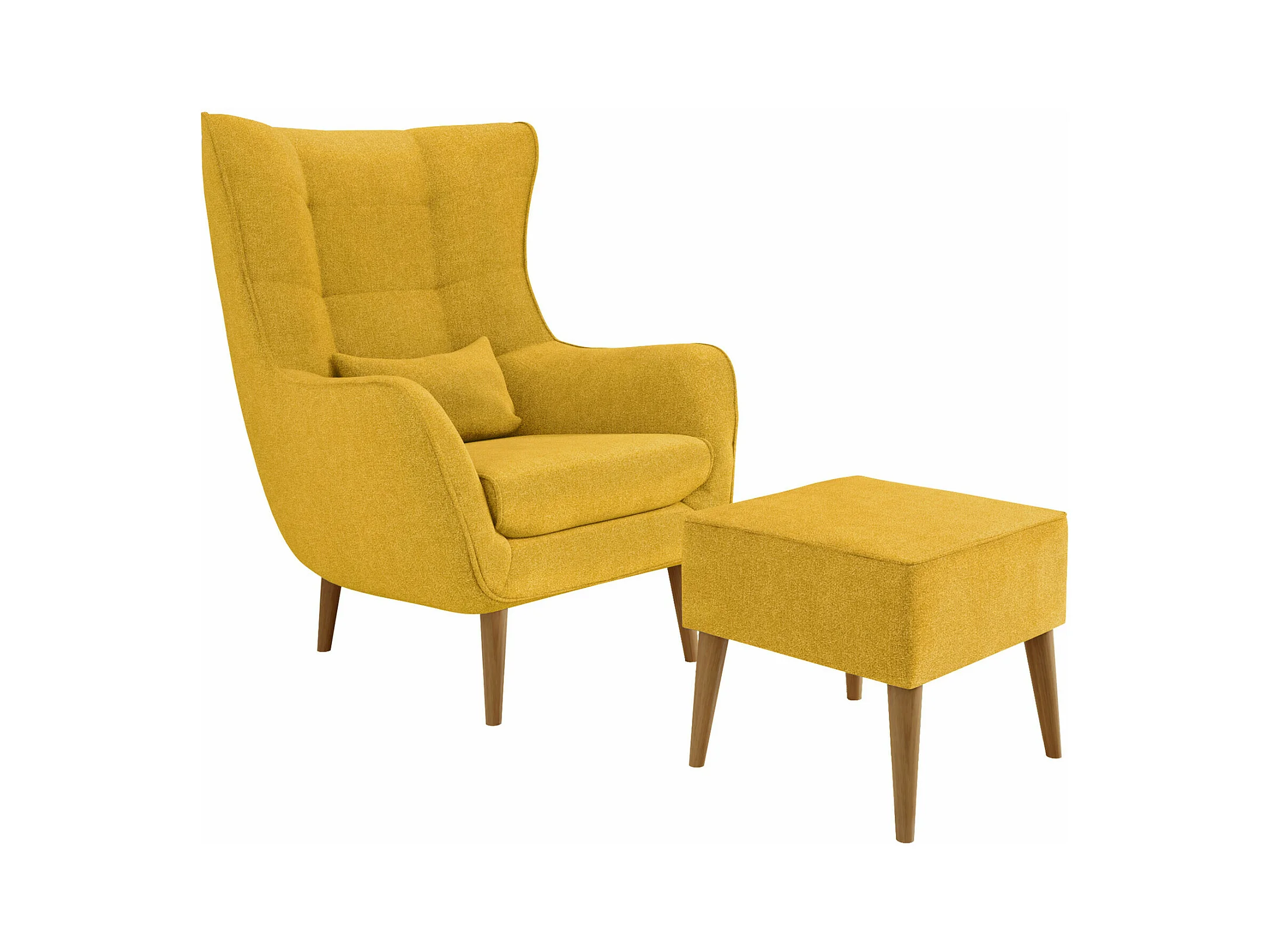 Sillón Comfivo 204, Amarillo, 106x80x95cm, Tapiz, Patas: Madera