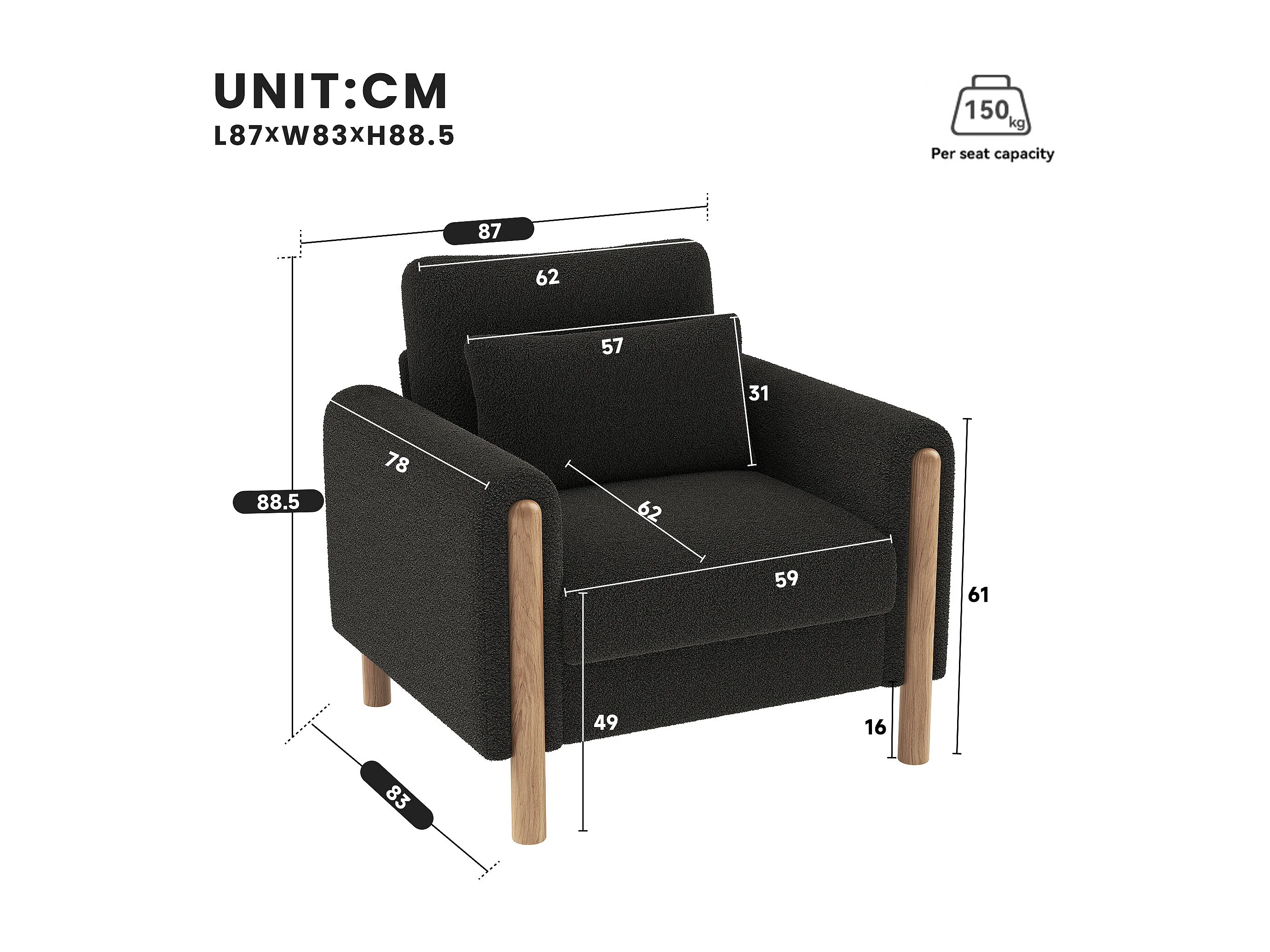 Sillón individual compacto, ideal para salón, dormitorio, habitación de invitados o habitación infantil, cómodo y versátil.