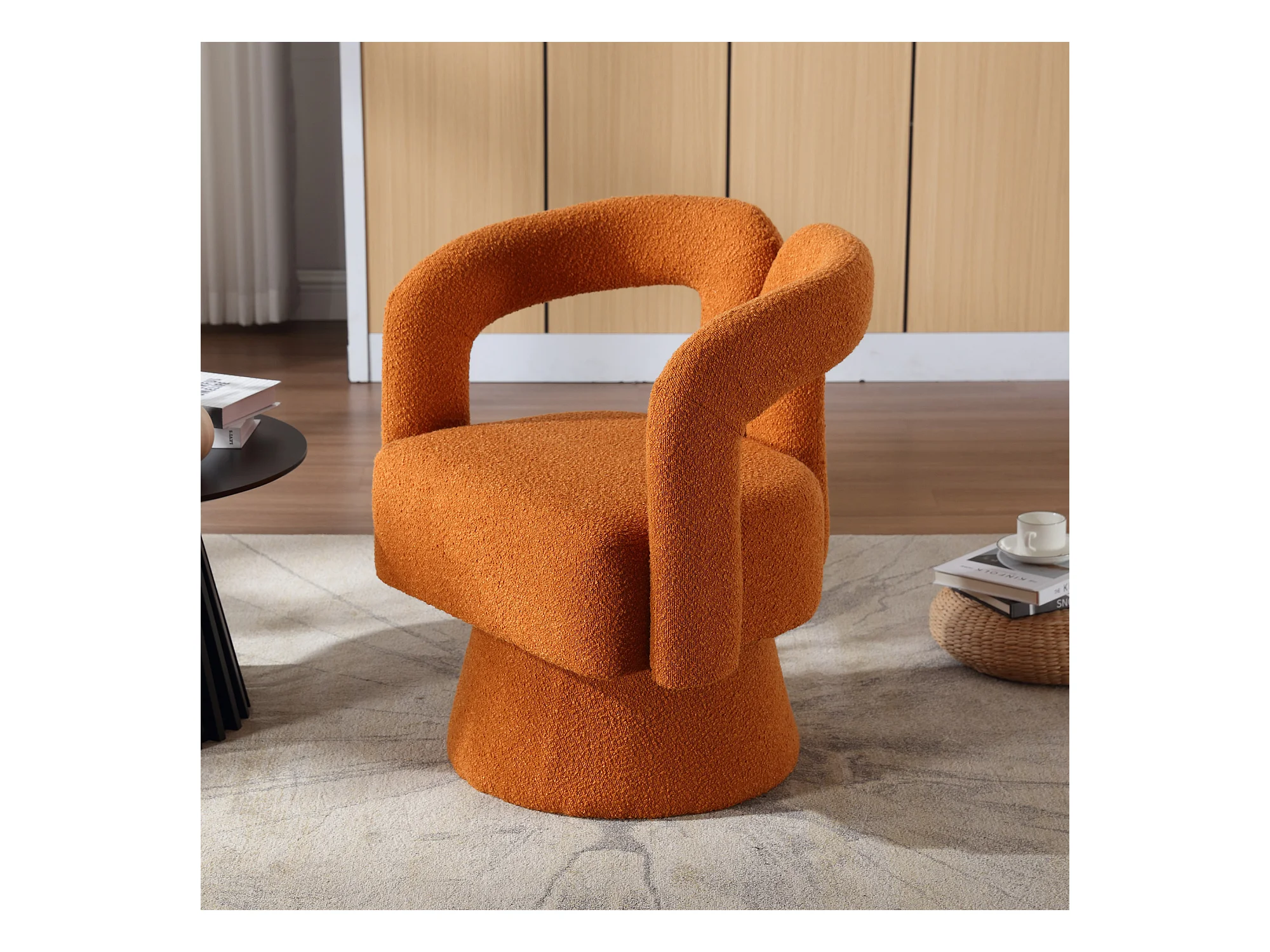 Sillón naranja - Sillón redondo con amplios cojines y reposabrazos - felpa - para salones y dormitorios