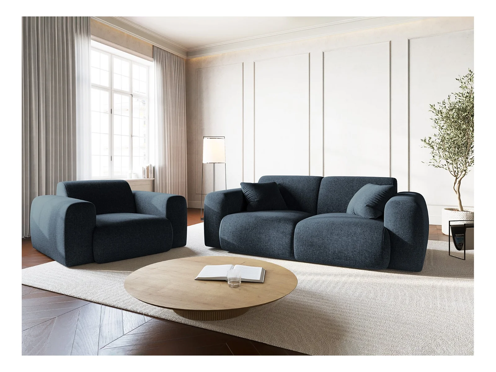 Cosmopolitan Design - Sillón "Nolio" 2 plazas de tejido chenilla azul regio - 105x95x72cm