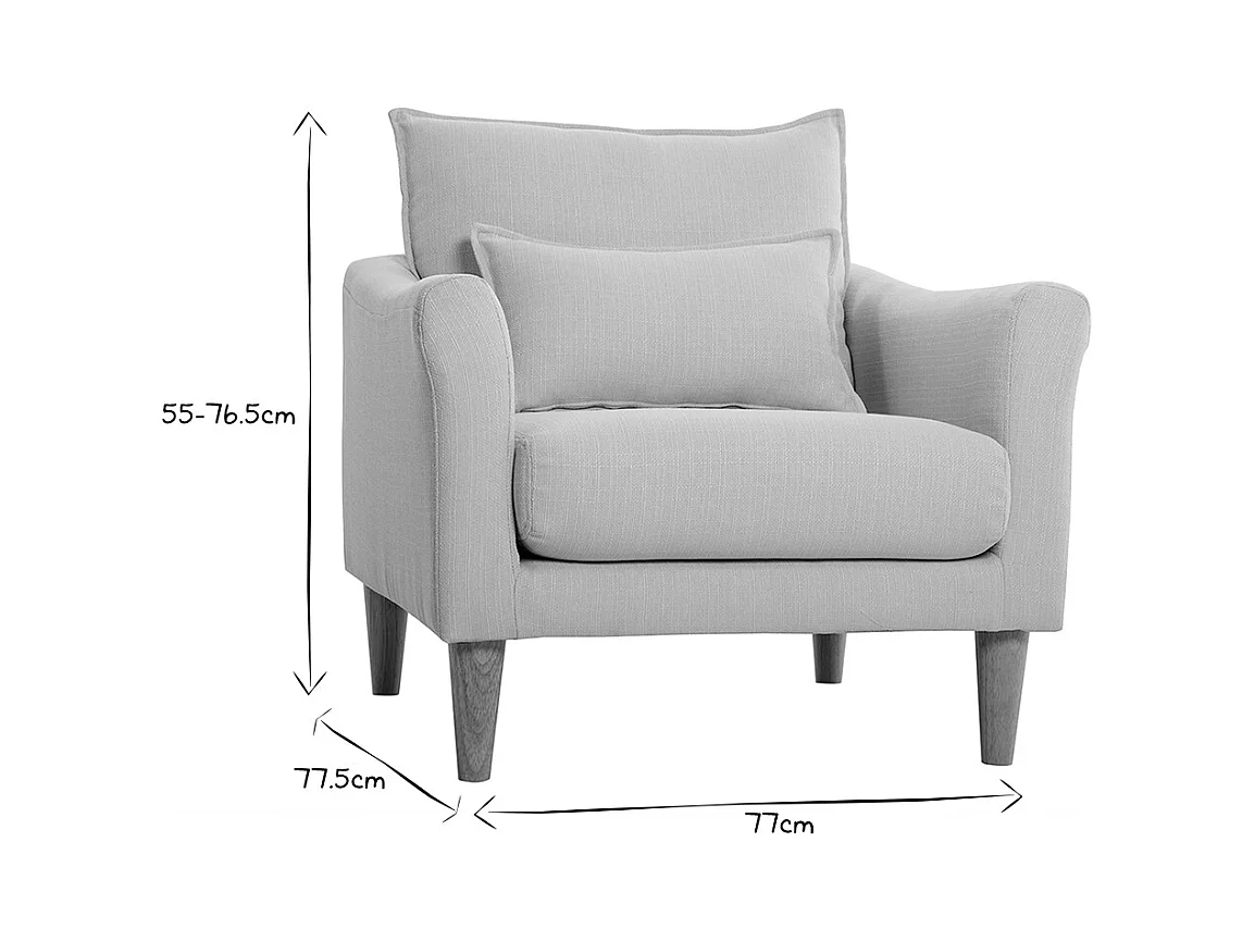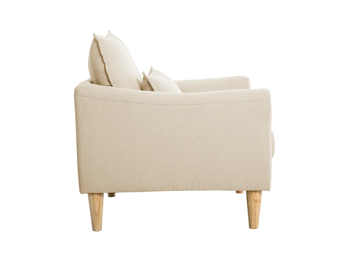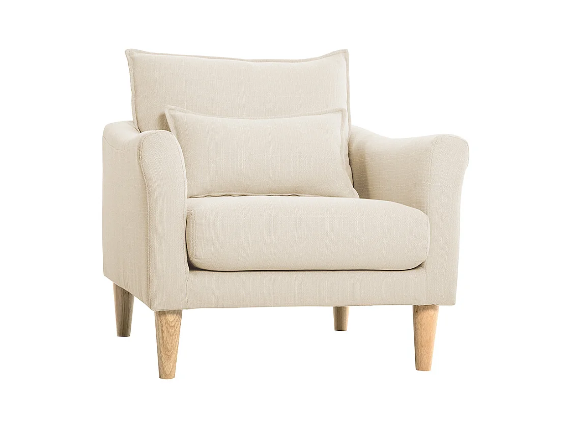 Sillón nórdico de tela beige y madera de caucho maciza KATE