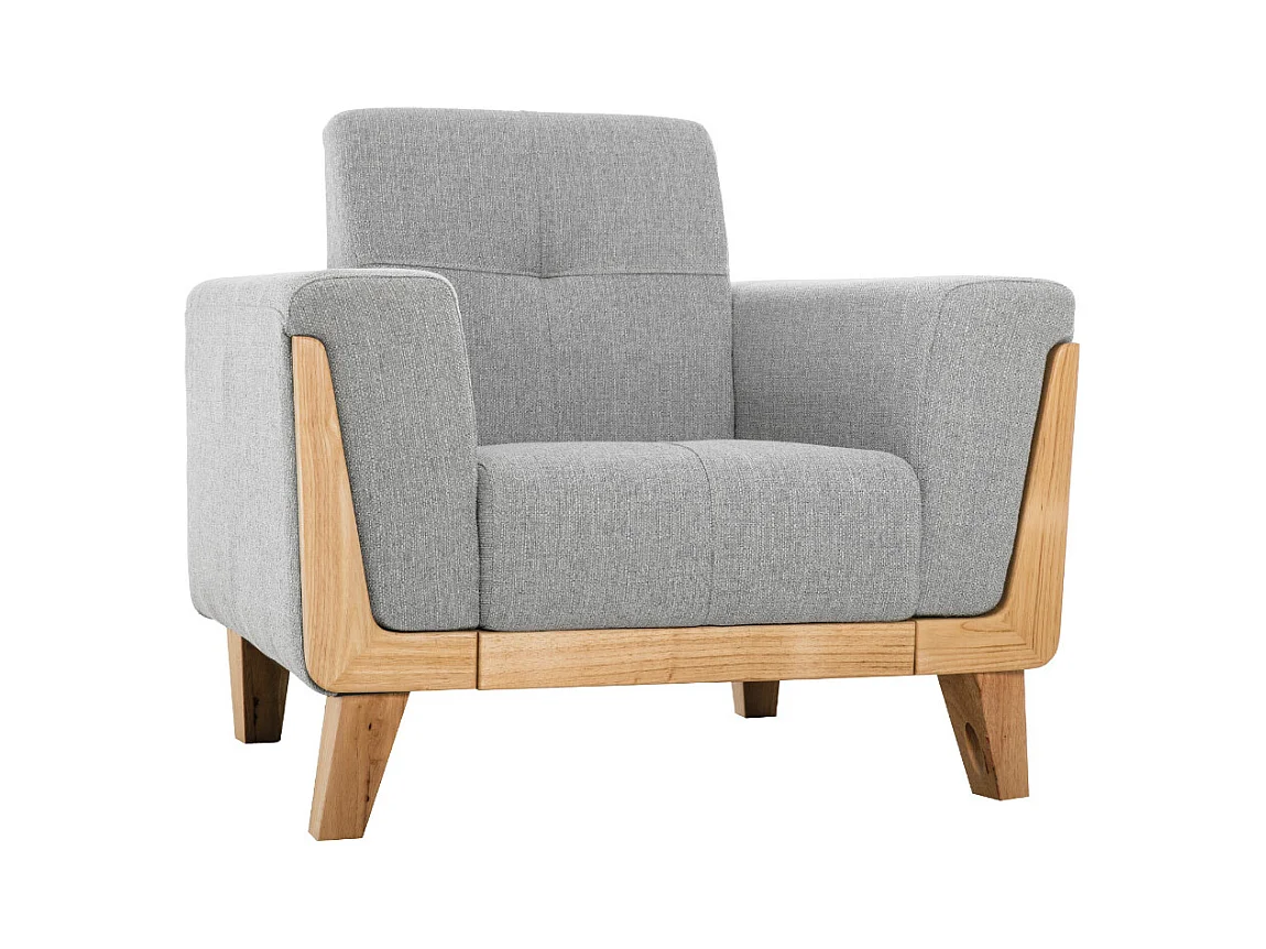 Sillón nórdico efecto terciopelo gris oscuro y madera AVERY