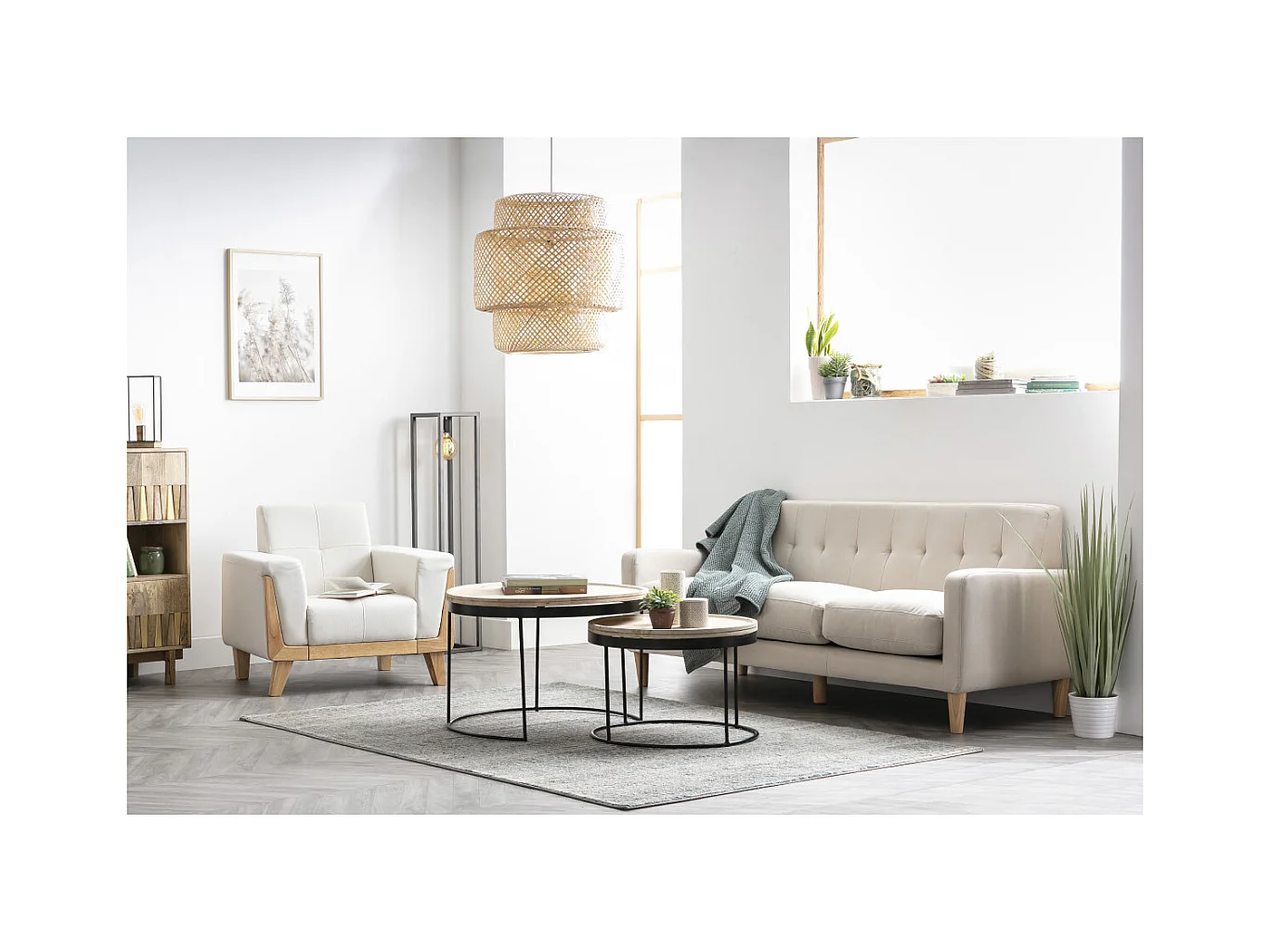 Mesa auxiliar redonda de cristal templado efecto madera y metal negro