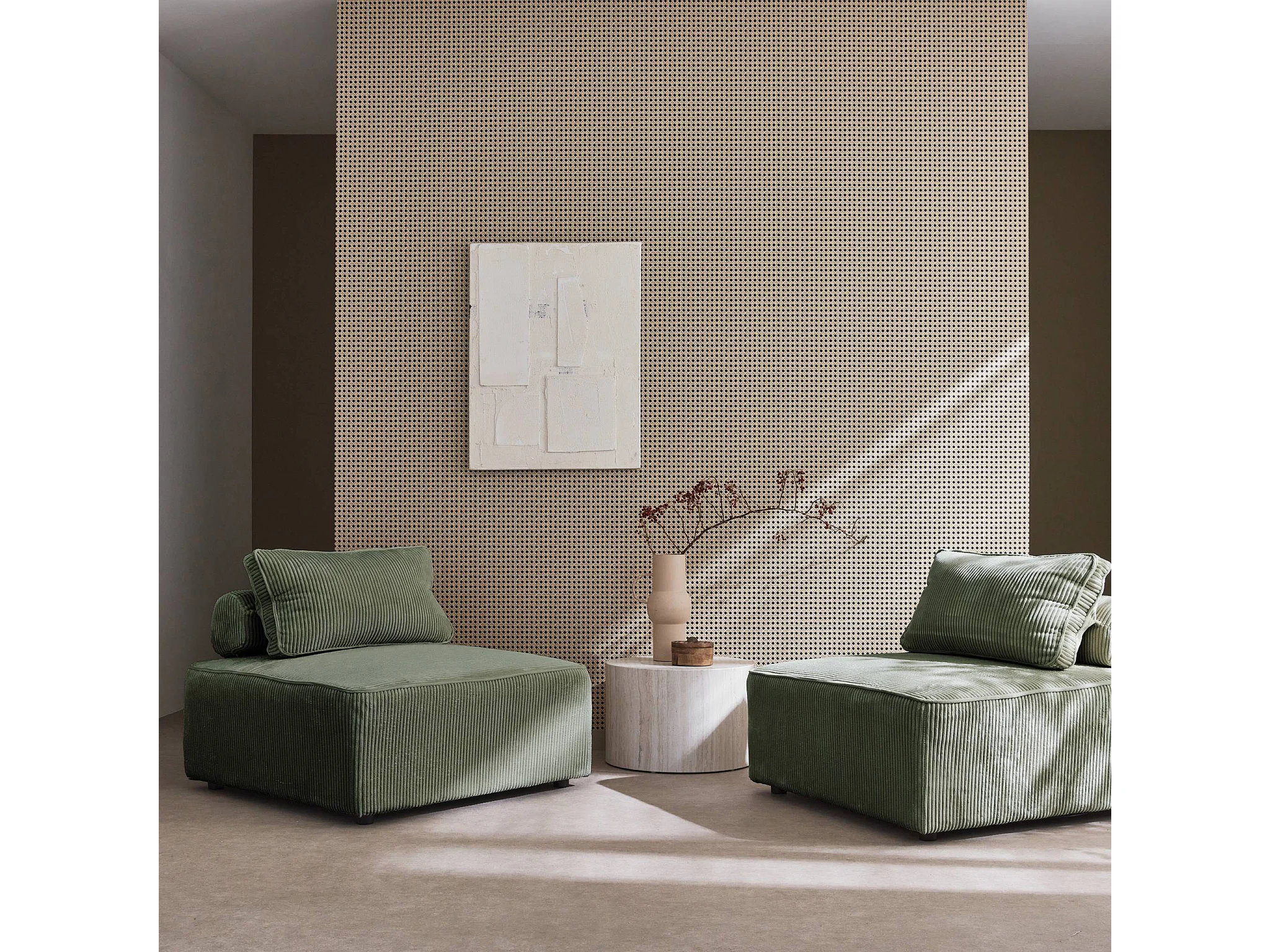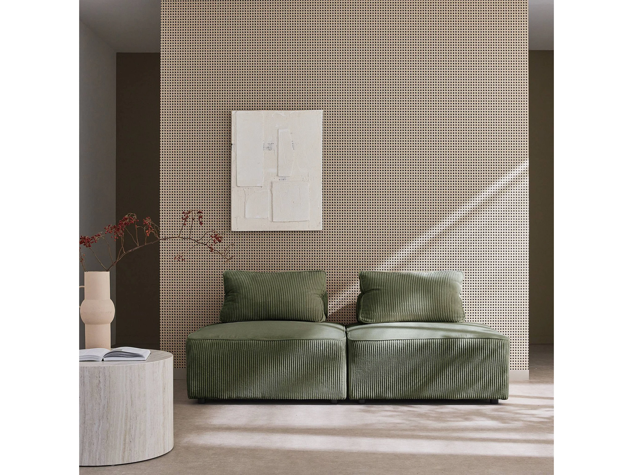 Sofá modular de pana, 2 plazas verde