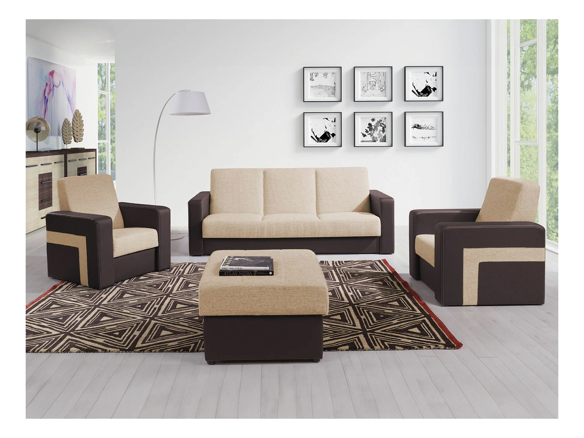 Sillón Tolveli 101, De color marrón claro, 90x82x80cm, Cuero ecológico + Tapiz