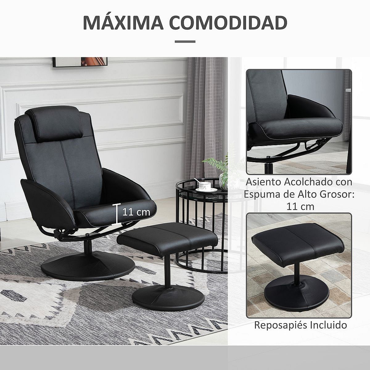 Sillón reclinable Ametrino Homcom con reposapiés negro 101x71x78 cm