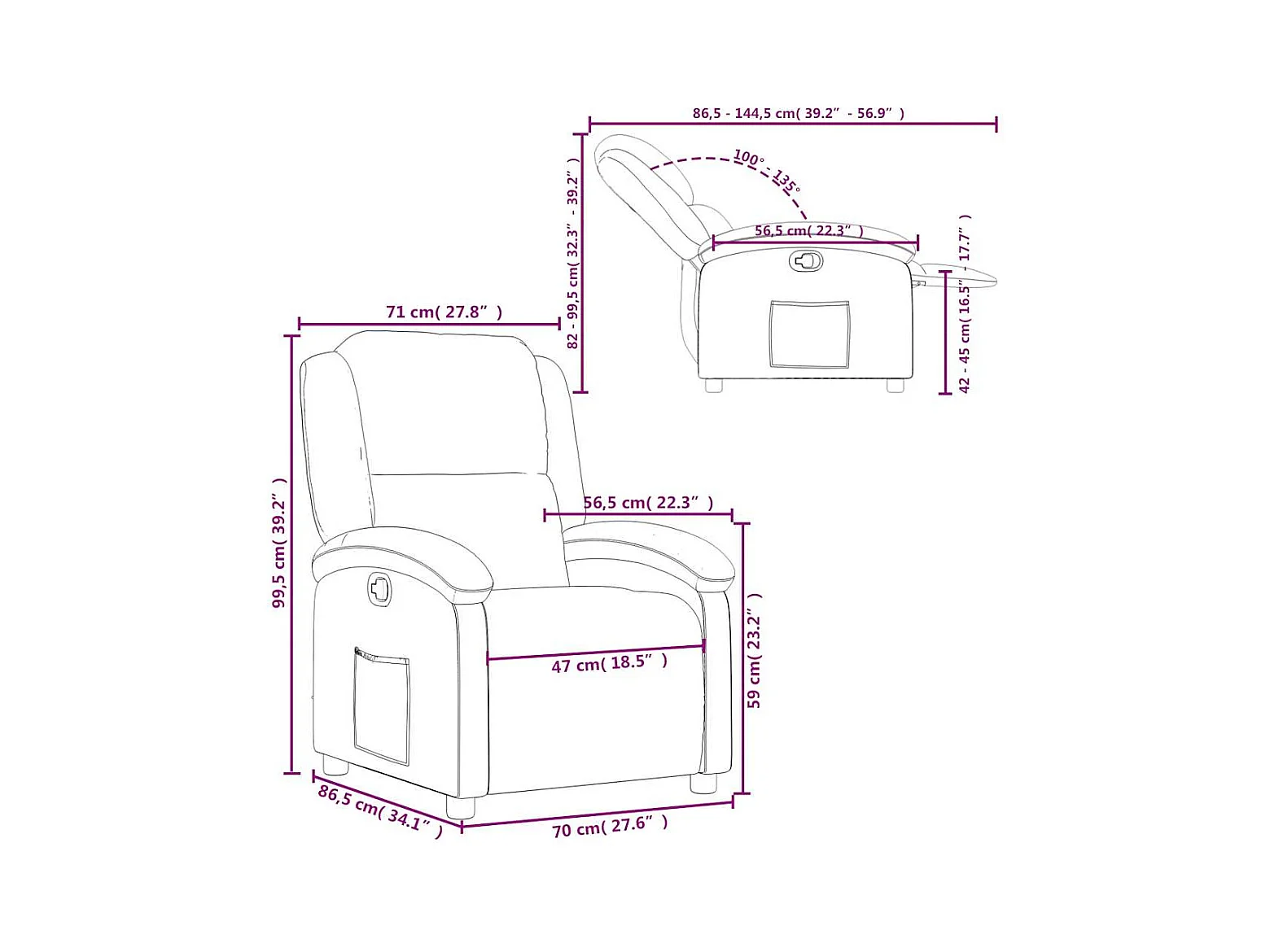 Sofá relax Siberia 1 plaza reclinable con reposapiés marengo 100x75x95 cm