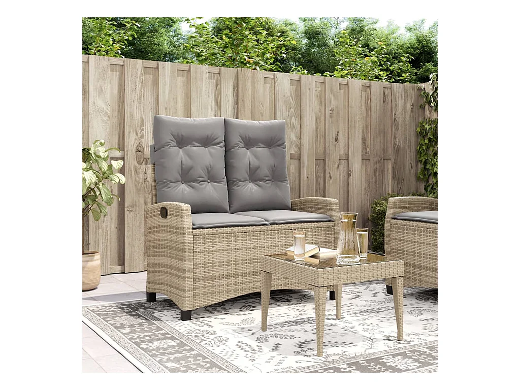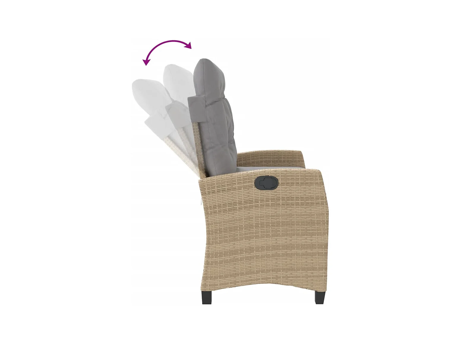 Sillón reclinable de jardín con cojines ratán sintético beige