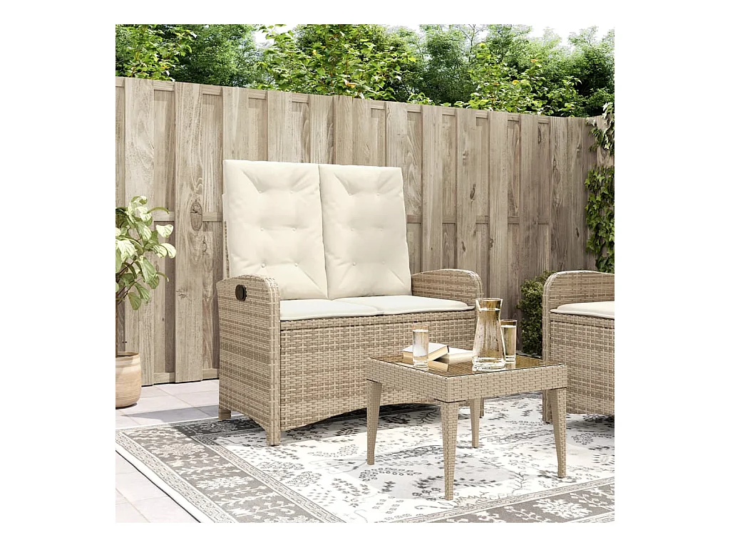 Sillón reclinable de jardín con cojines ratán sintético beige ES27714