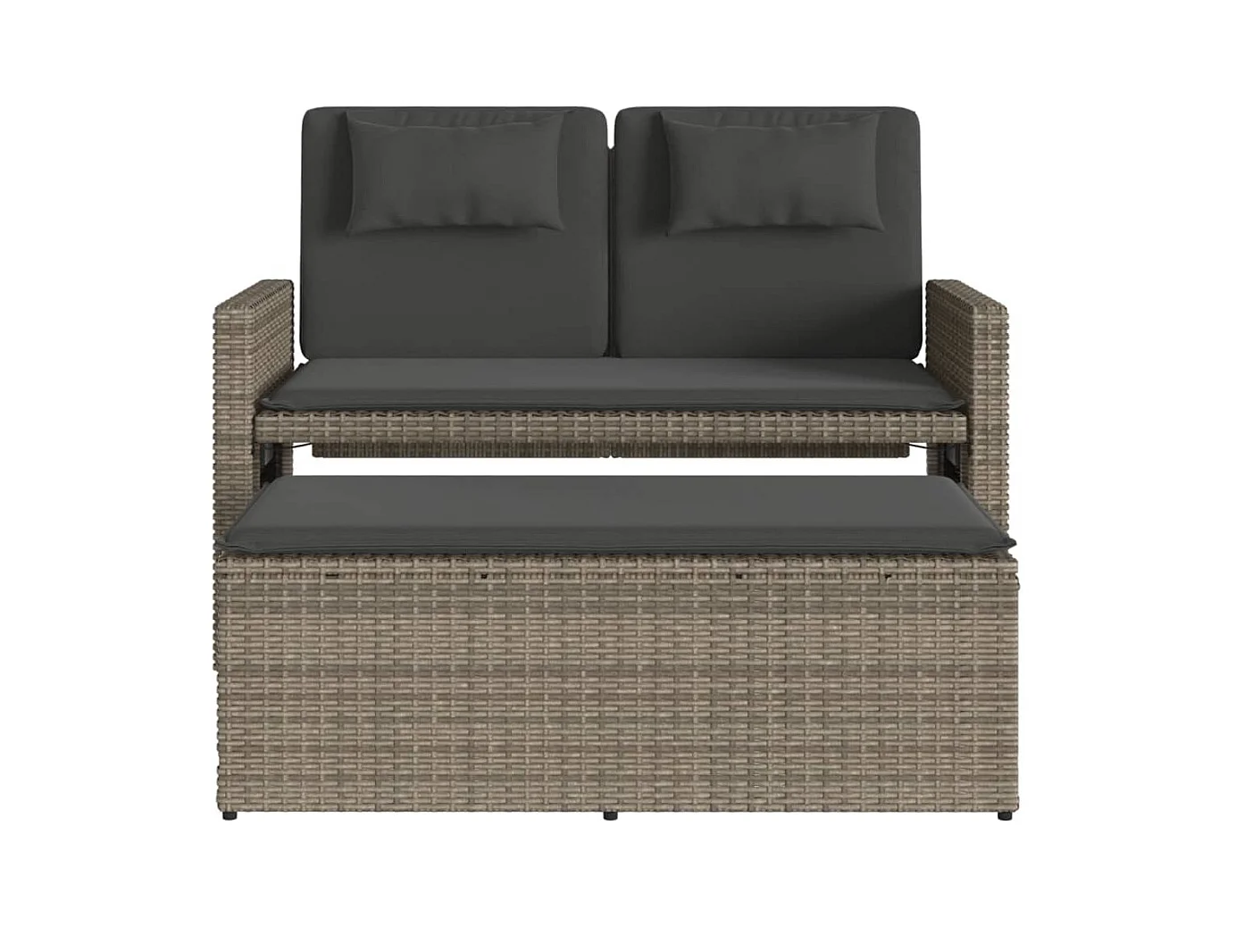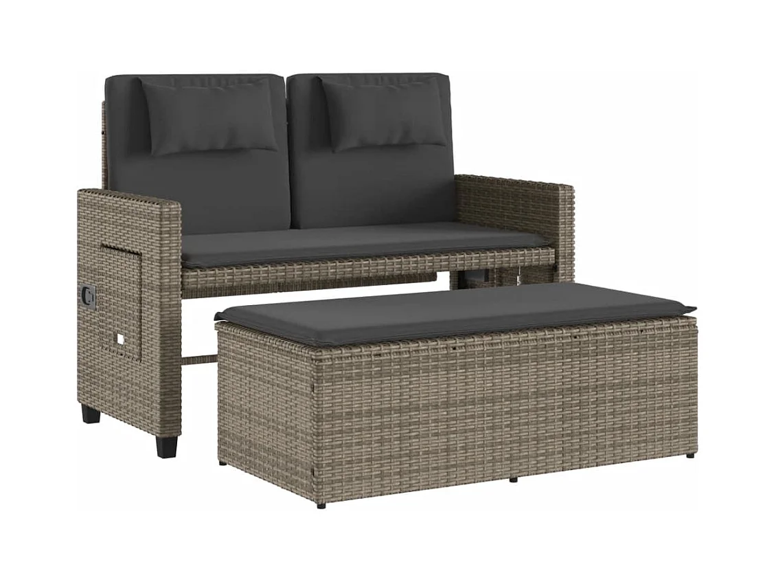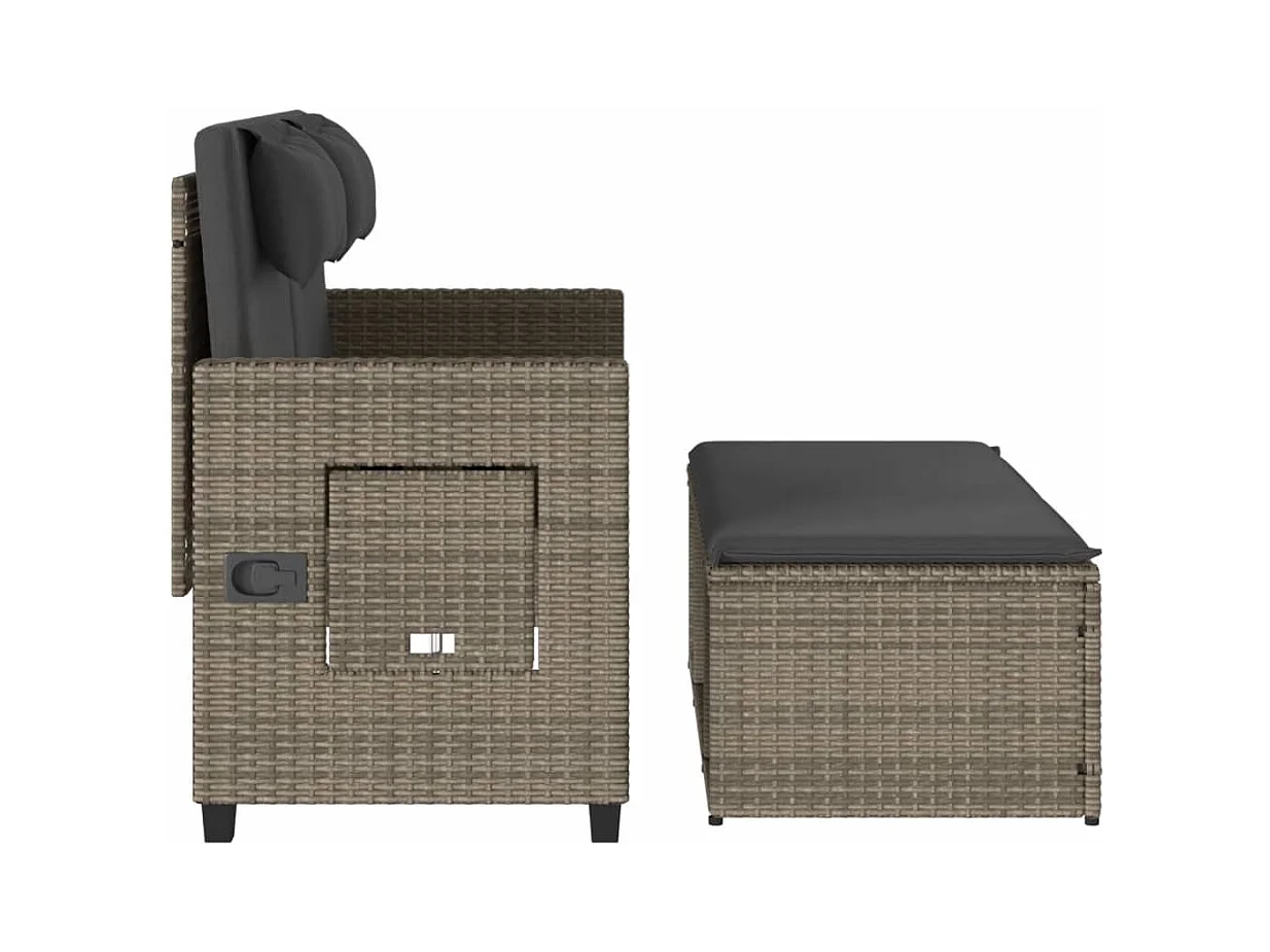 Banco de jardín con cojines y reposapiés ratán sintético gris