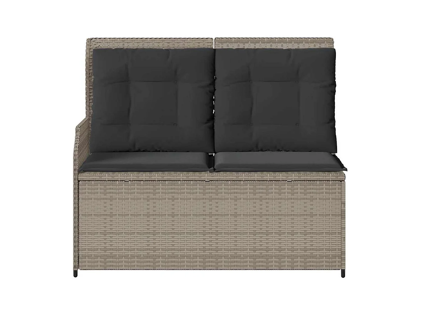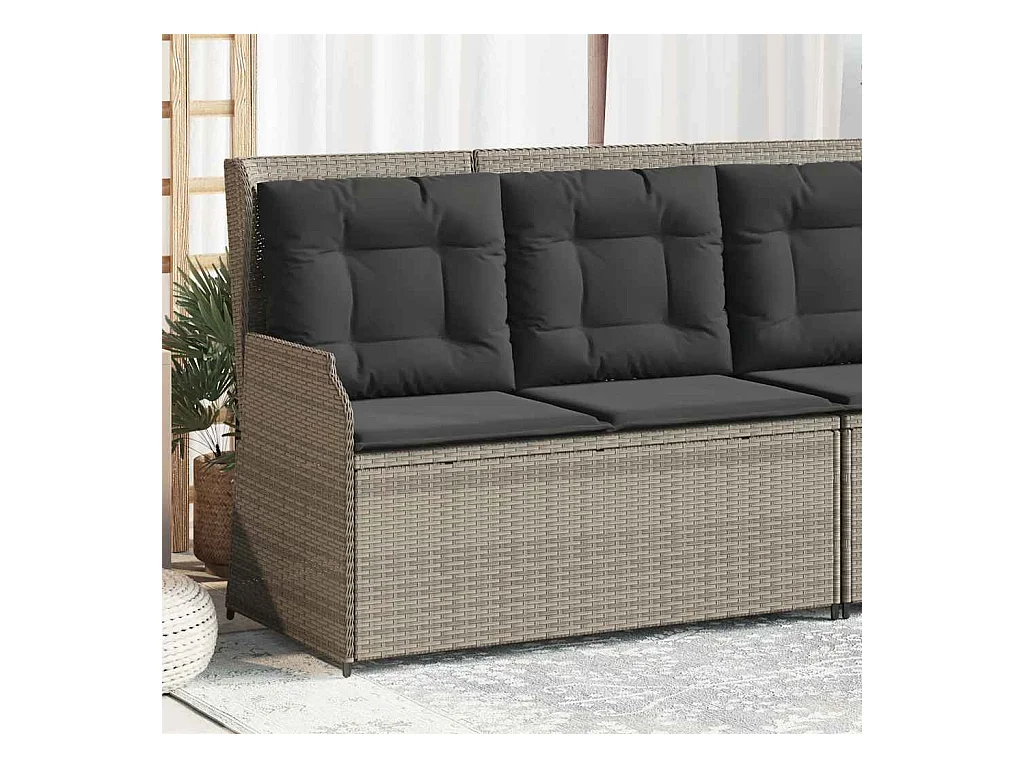 Sillón reclinable de jardín con cojines ratán sintético gris