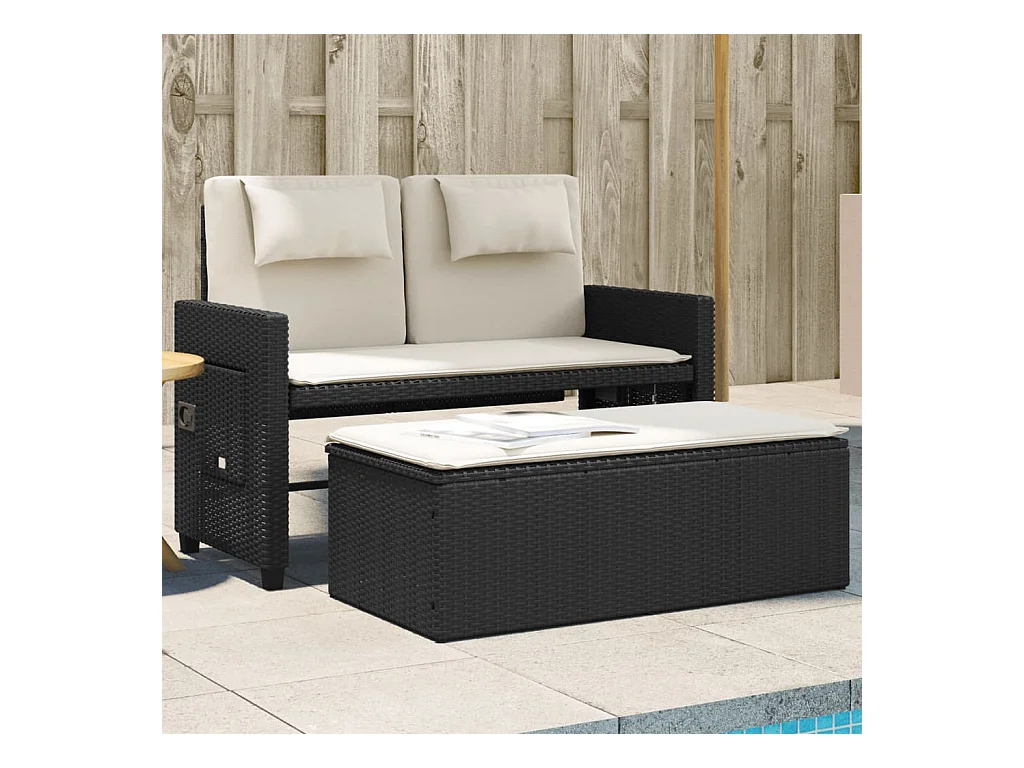 Banco de almacenamiento jardín con cojín ratán sintético negro