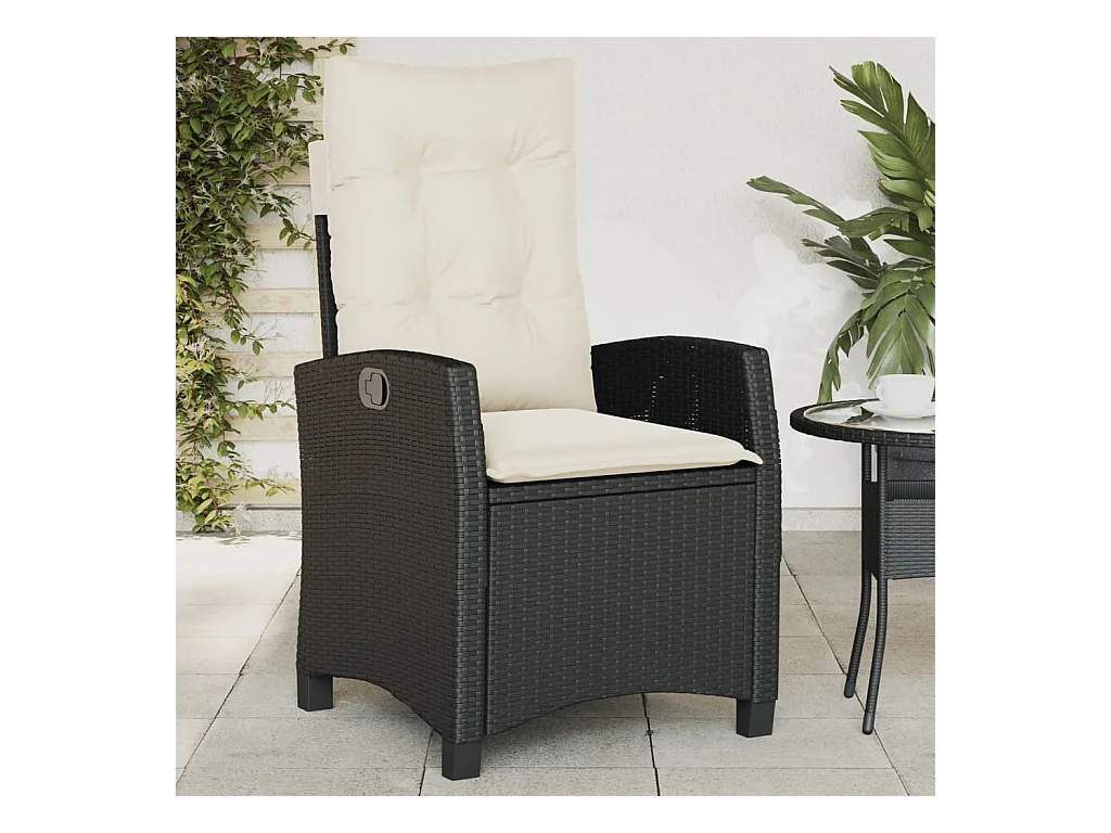 Sillón reclinable de jardín con cojines ratán sintético negro ES324411
