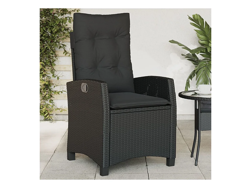 Sillón reclinable de jardín con cojines ratán sintético negro KOW26037