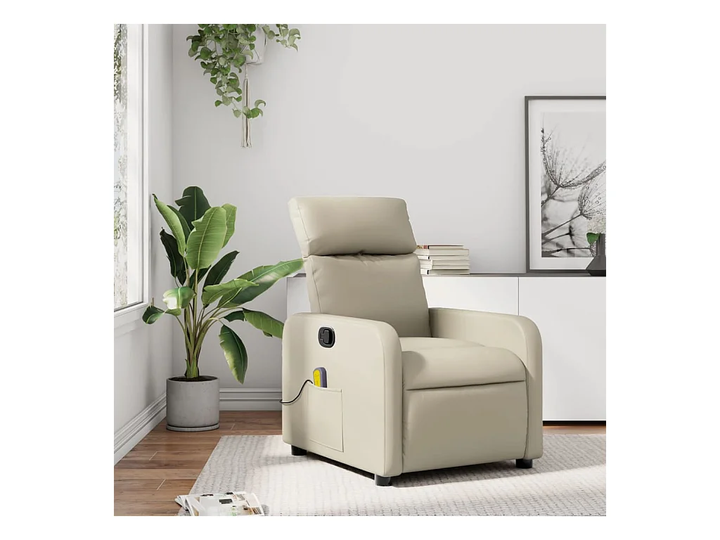 Sillón reclinable de masaje cuero sintético crema YOE99835