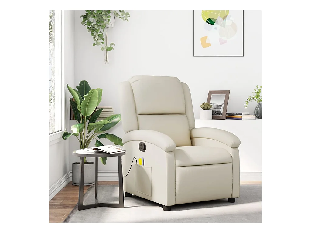 Sillón reclinable de masaje cuero sintético crema YOE87431