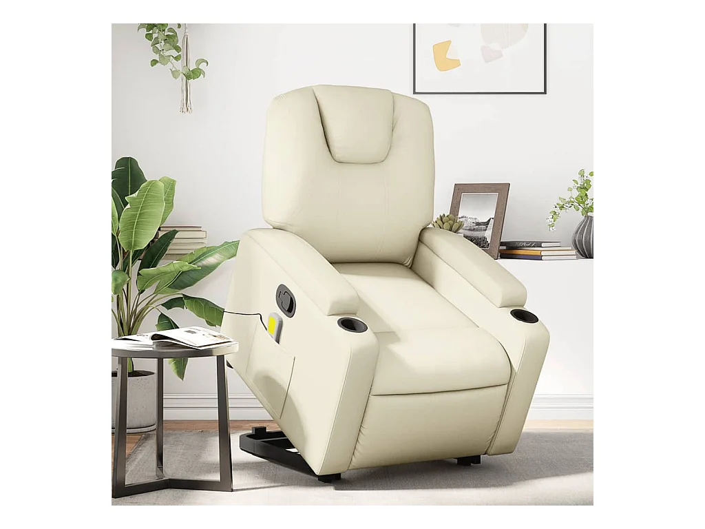 Sillón reclinable de masaje cuero sintético crema YOE87431