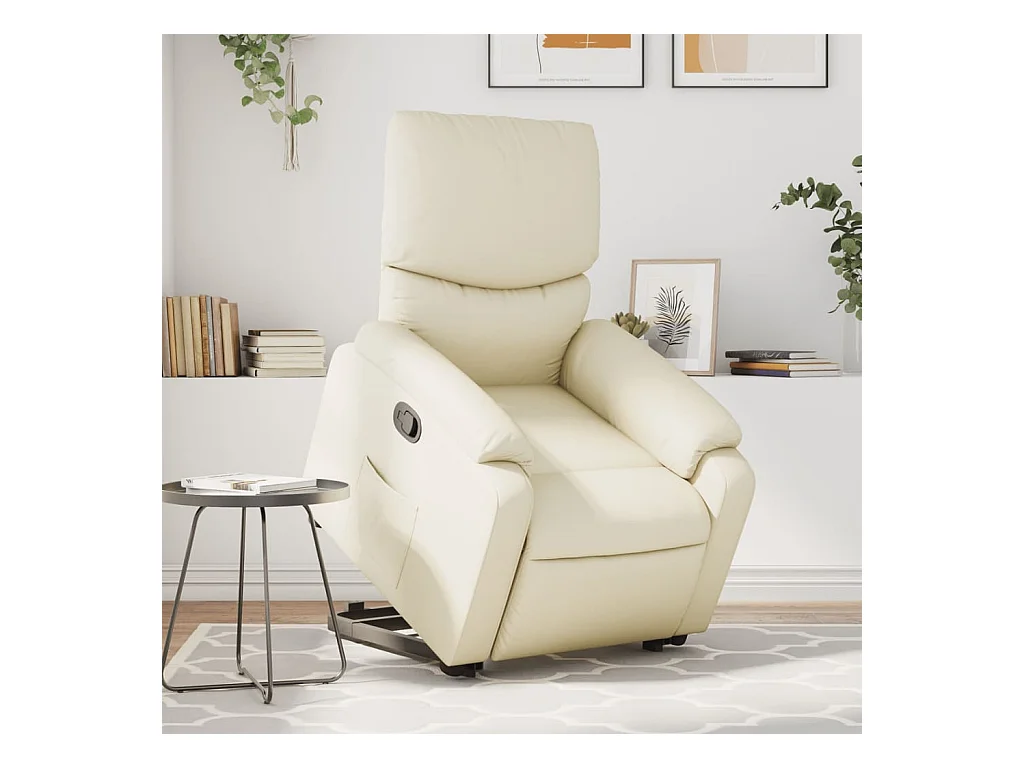 Sillón reclinable de masaje cuero sintético crema YOE71283