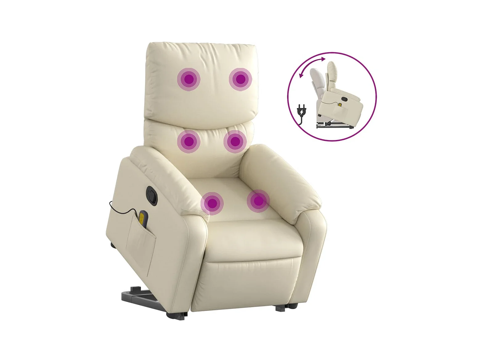 Sillón reclinable de masaje cuero sintético crema YOE99835