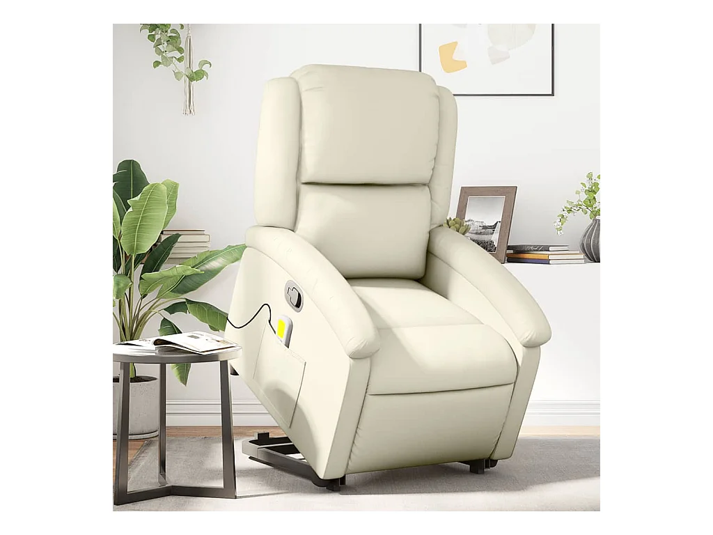 Sillón reclinable de masaje cuero sintético crema YOE87431